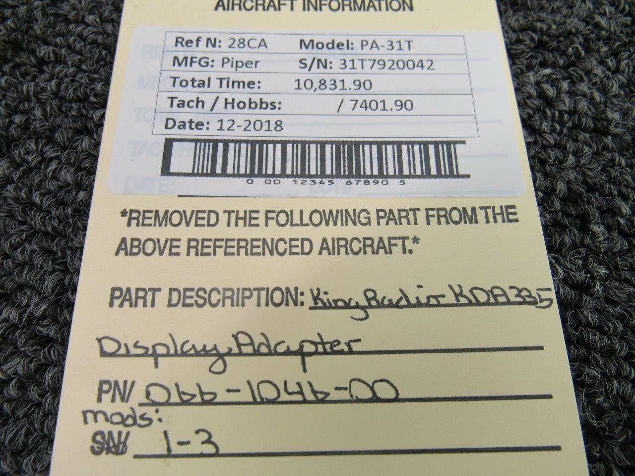 Part removed from aircraft in its original, unaltered state. Most of the inventory available from BAS Part Sales is in As-Removed condition. We removed it from the aircraft in working condition and expect it to pass inspection. As-Removed items come with our 90-day Money-Back Guarantee. Read More