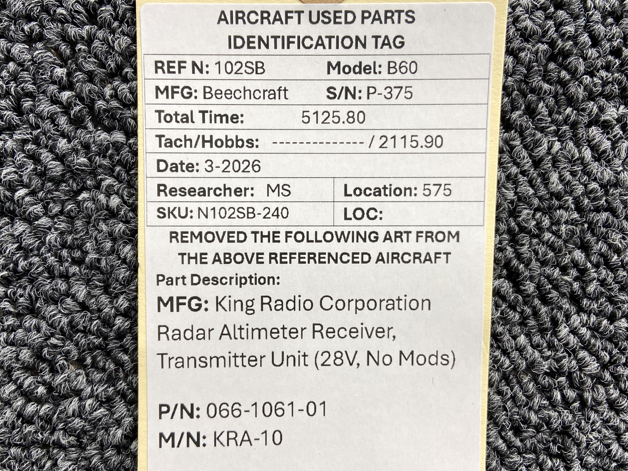 Every part is carefully inspected throughout our process and several times before it goes online. Most items are sold as-removed, just as they came off the aircraft. These parts are not functionally tested. What we do provide is clear photos, full traceability when available, pricing that reflects the as-removed condition, and a no-nonsense 90-day return window.