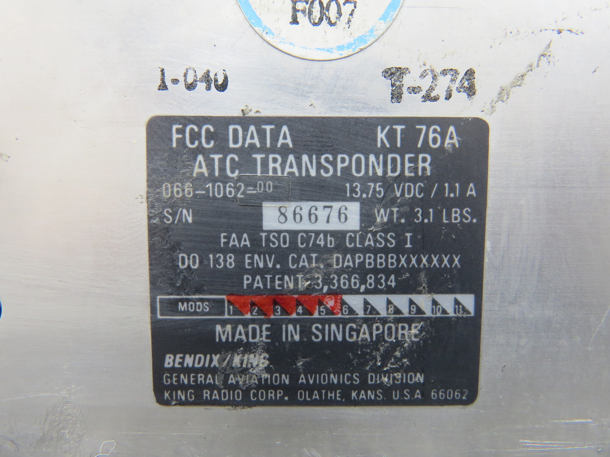 - Model Number: KT-76A