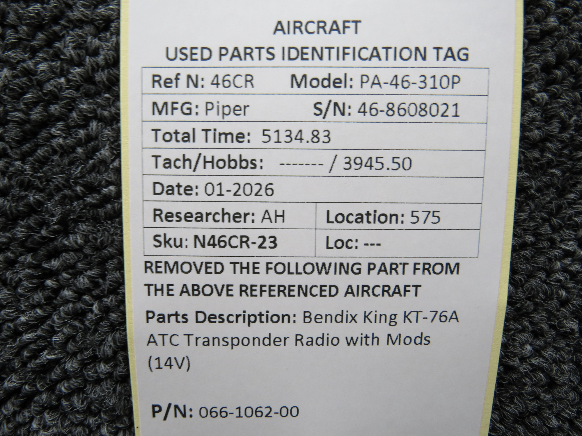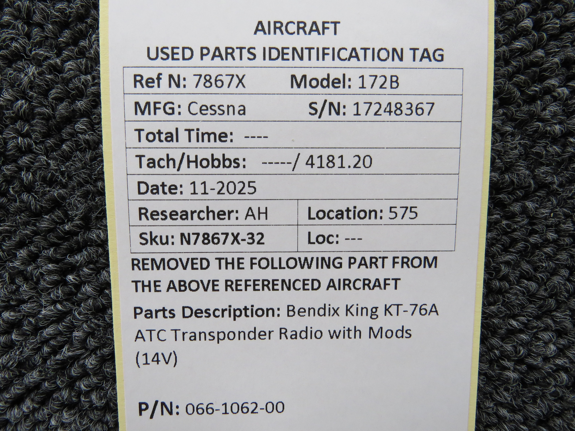 Unless specifically noted, most of our used airplane parts are sold in the condition they were removed, which means you should expect the usual signs of wear and tear.