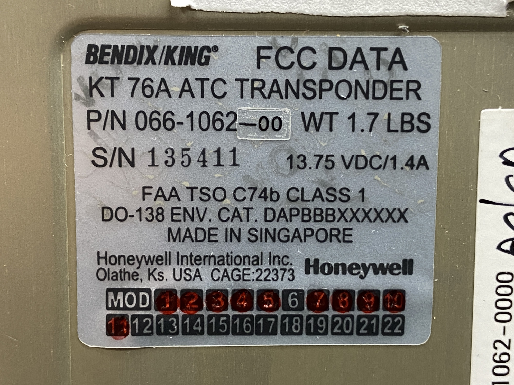- Manufacturer: Bendix King / Honeywell