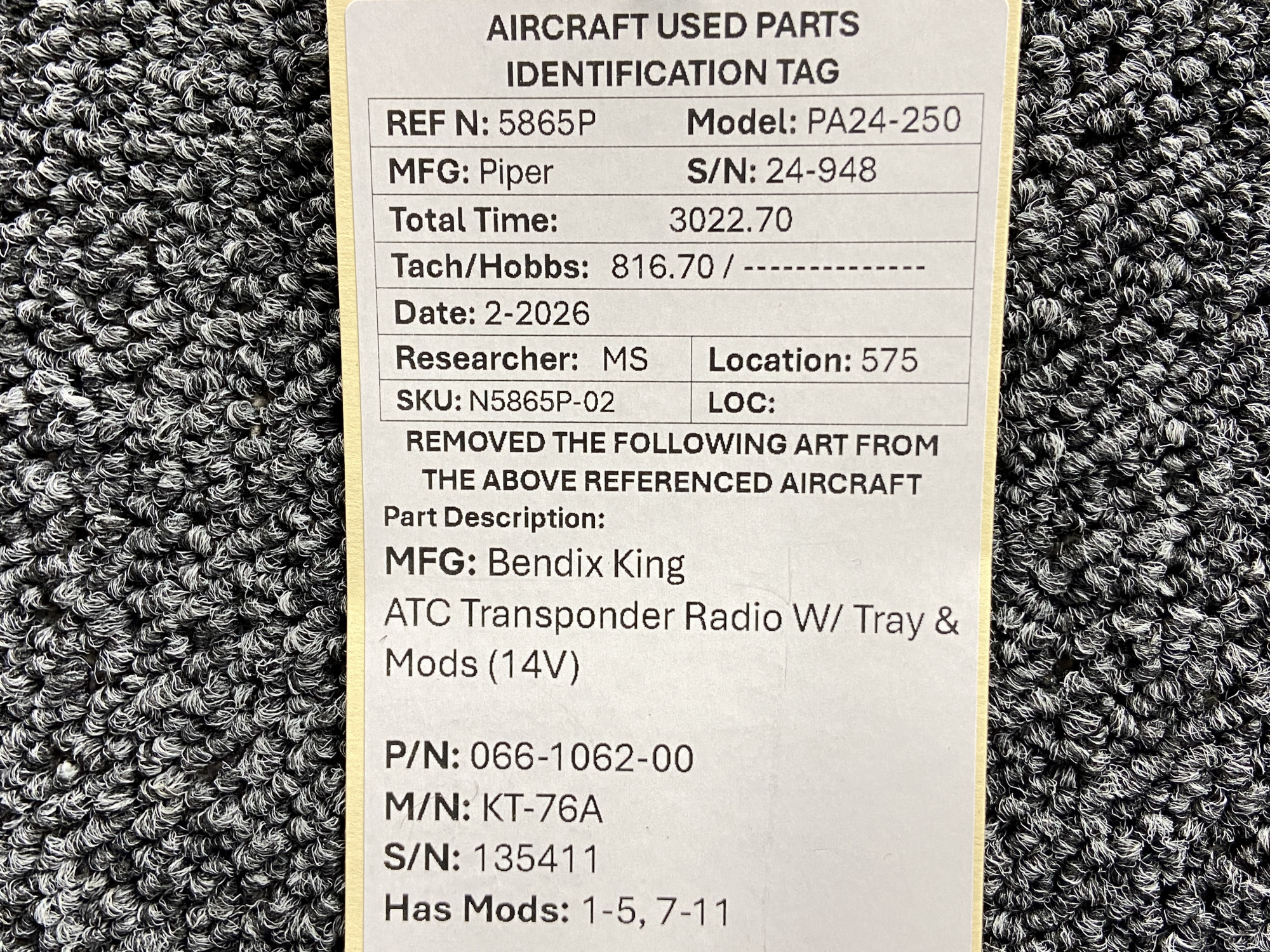 Unless specifically noted, most of our used airplane parts are sold in the condition they were removed, which means you should expect the usual signs of wear and tear.