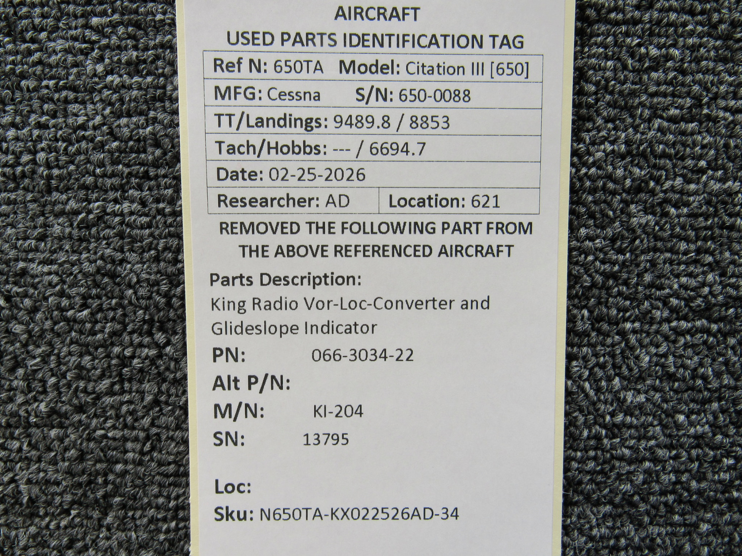 Unless specifically noted, most of our used airplane parts are sold in the condition they were removed, which means you should expect the usual signs of wear and tear.