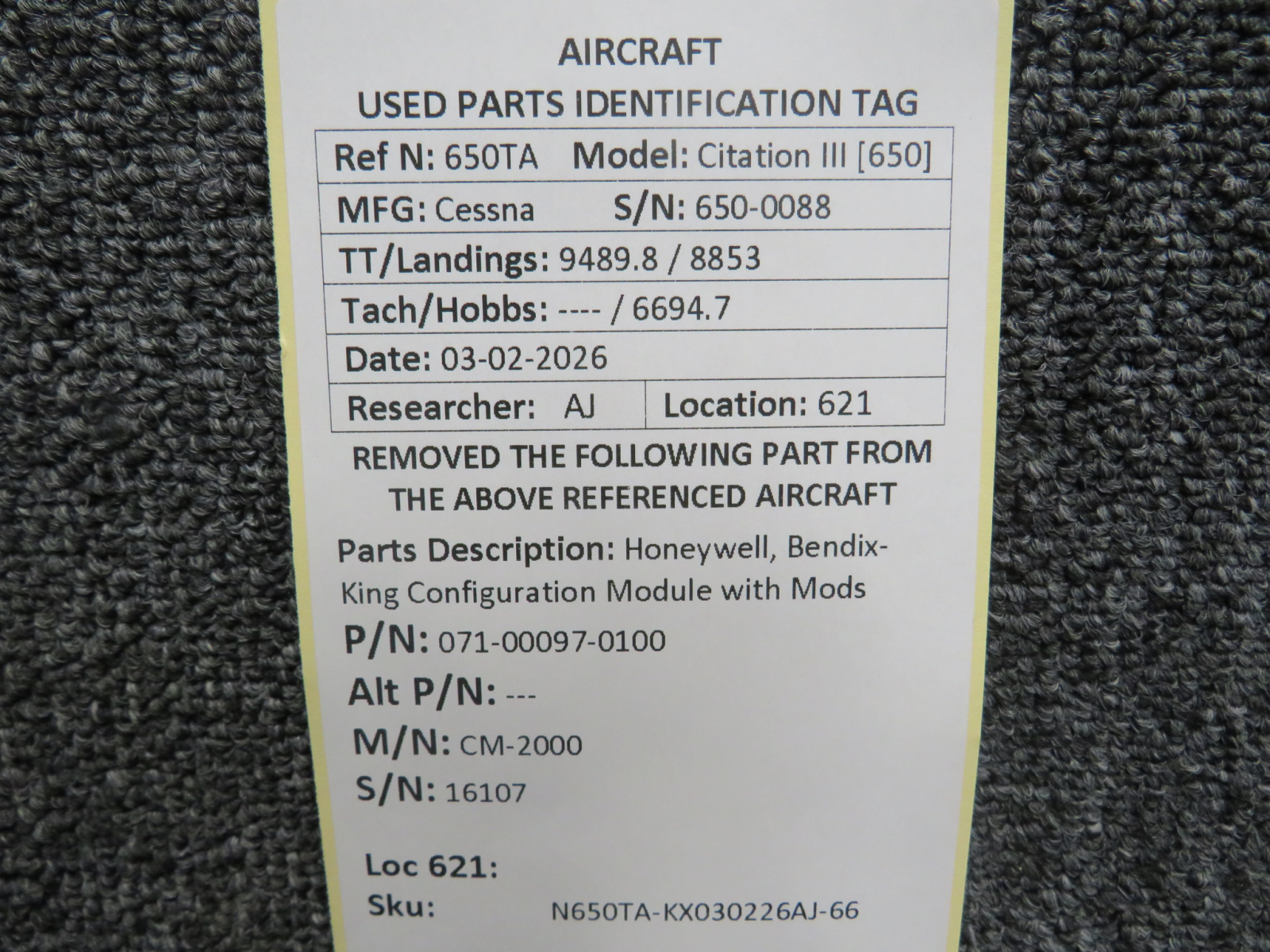 Every part is carefully inspected throughout our process and several times before it goes online. Most items are sold as-removed, just as they came off the aircraft. These parts are not functionally tested. What we do provide is clear photos, full traceability when available, pricing that reflects the as-removed condition, and a no-nonsense 90-day return window.