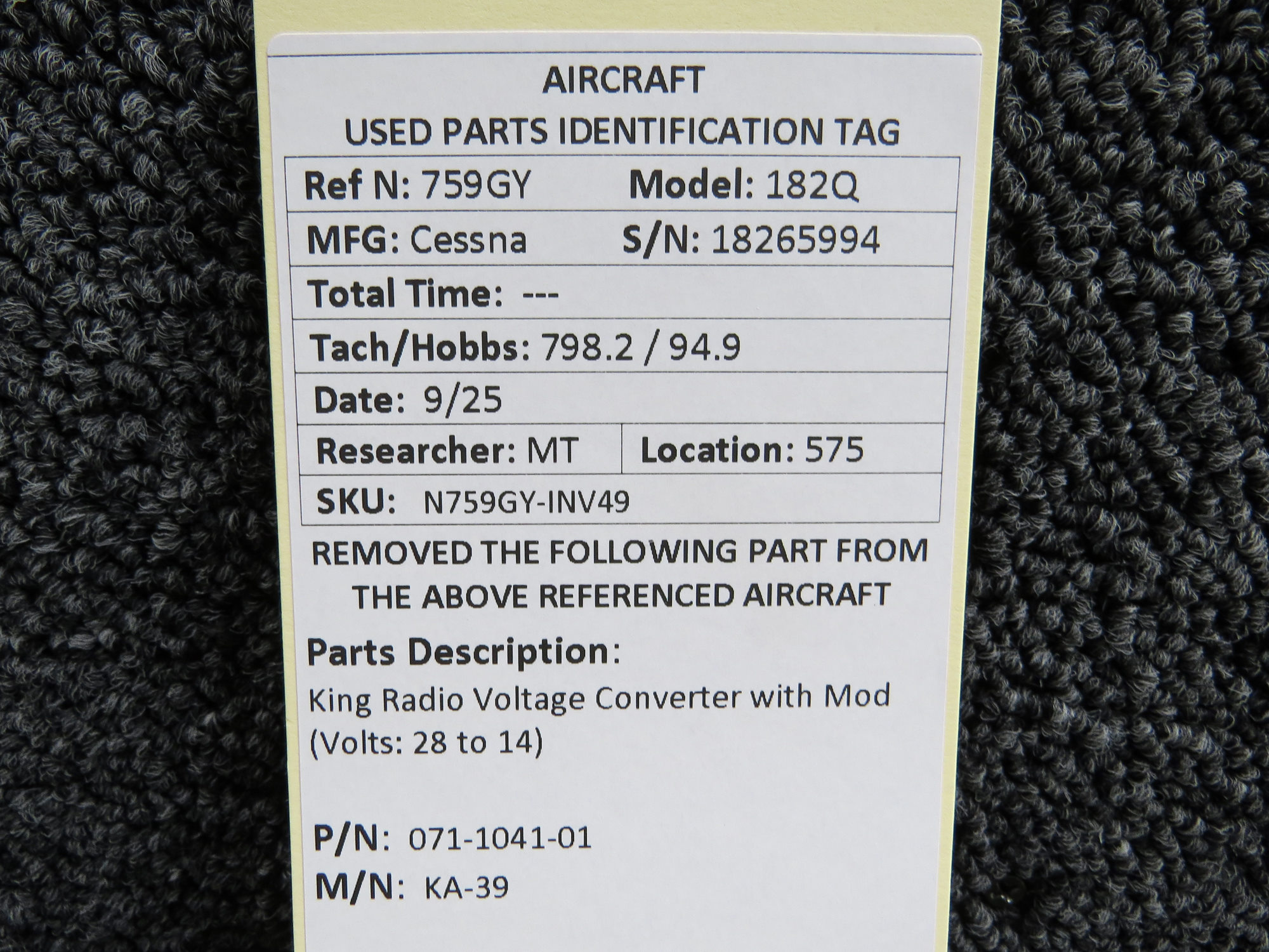 Unless specifically noted, most of our used airplane parts are sold in the condition they were removed, which means you should expect the usual signs of wear and tear.