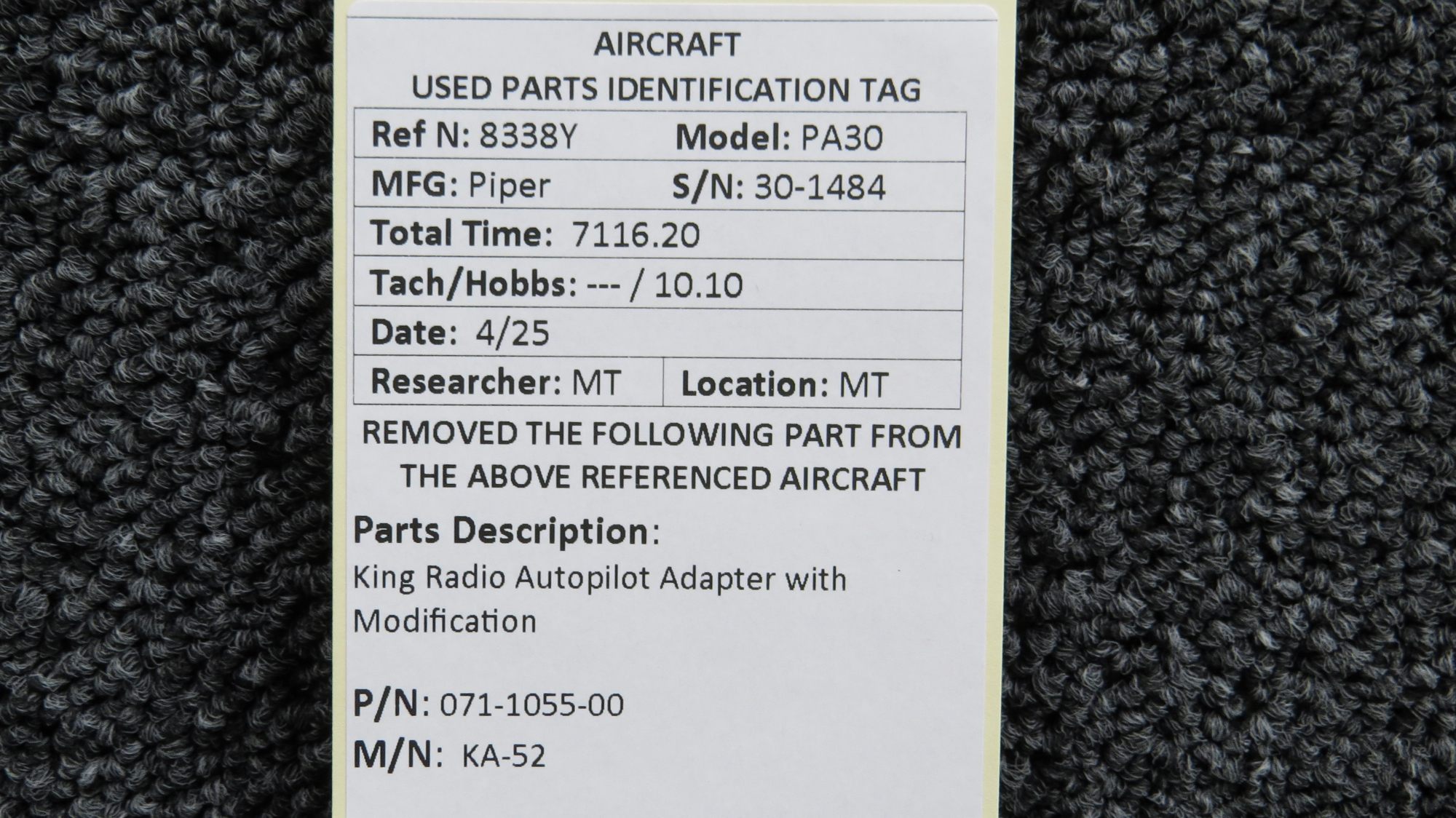 Every part is carefully inspected throughout our process and several times before it goes online. Most items are sold as-removed, just as they came off the aircraft. These parts are not functionally tested. What we do provide is clear photos, full traceability when available, pricing that reflects the as-removed condition, and a no-nonsense 90-day return window.