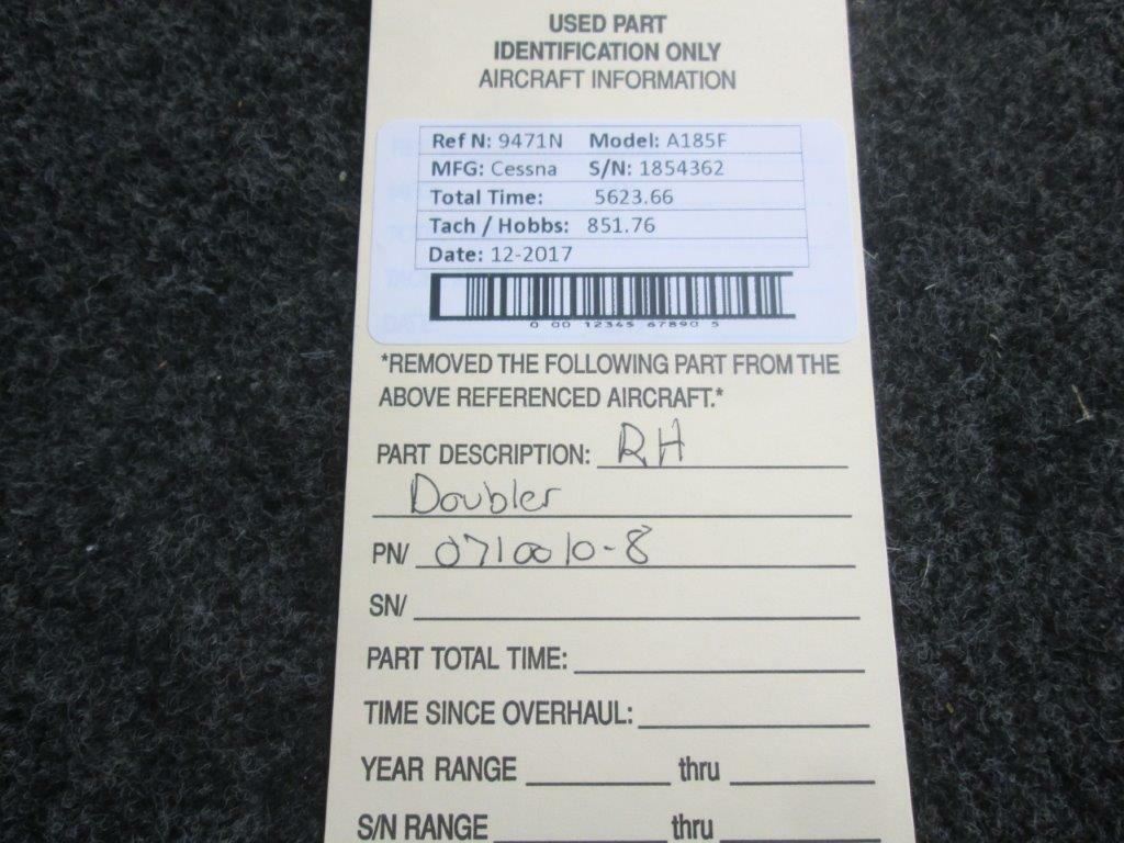 This is a 0710070-8 Cessna A185F RH Doubler that is for sale. Guaranteed to work and pass your inspection or your money back