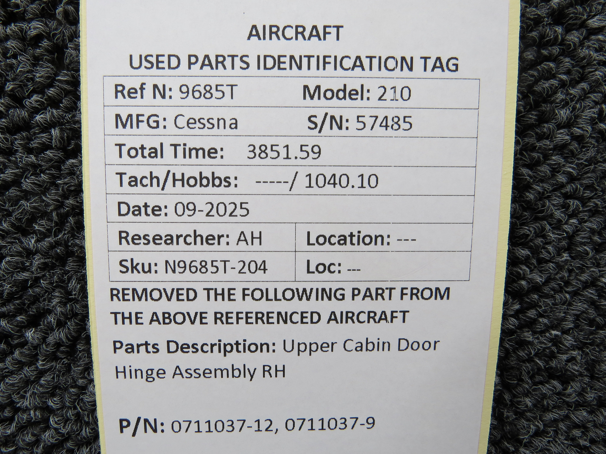 - Lower Hinge Part Number: 0711037-12