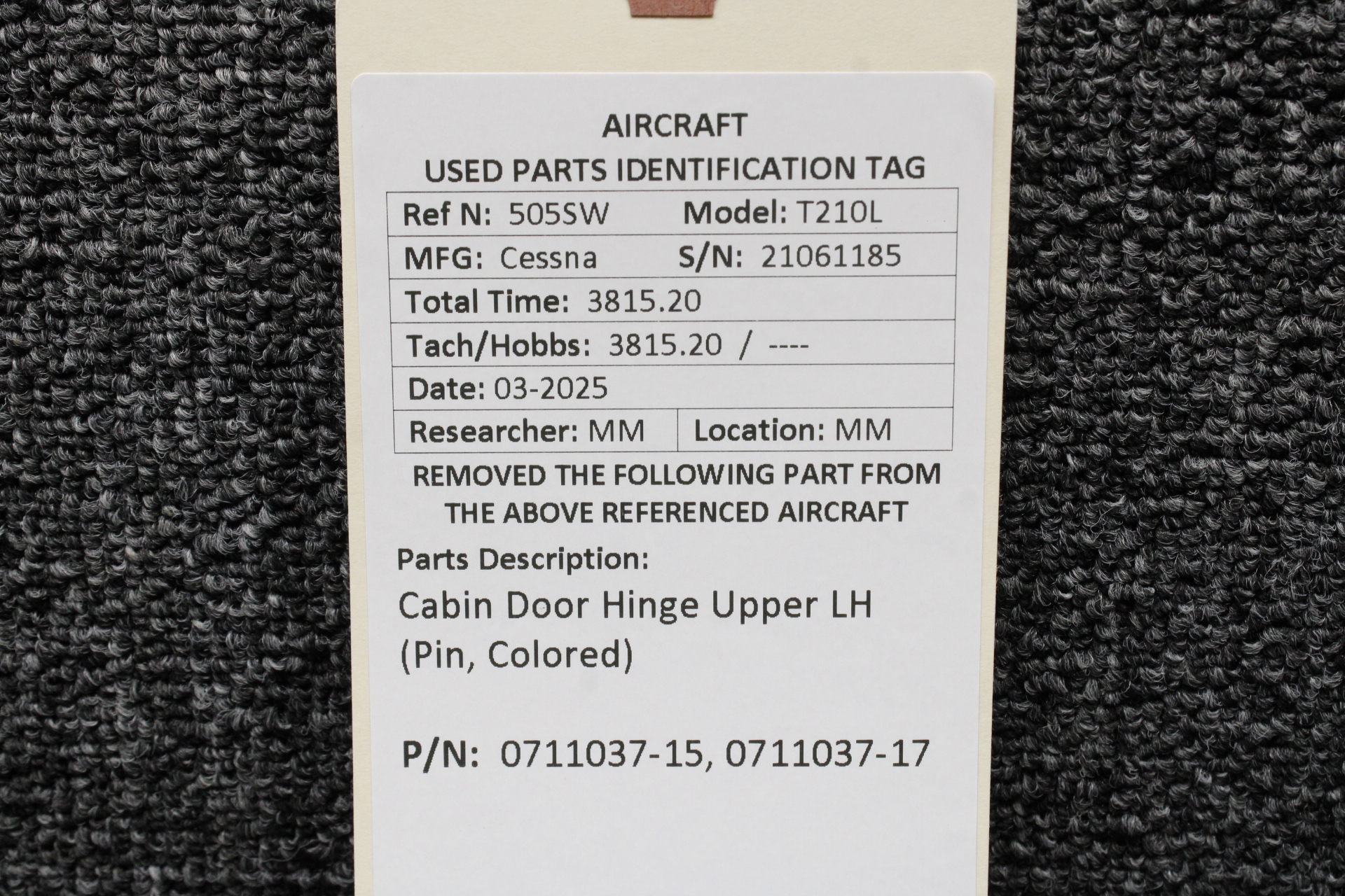 - Forward Hinge Part Number: 0711037-15