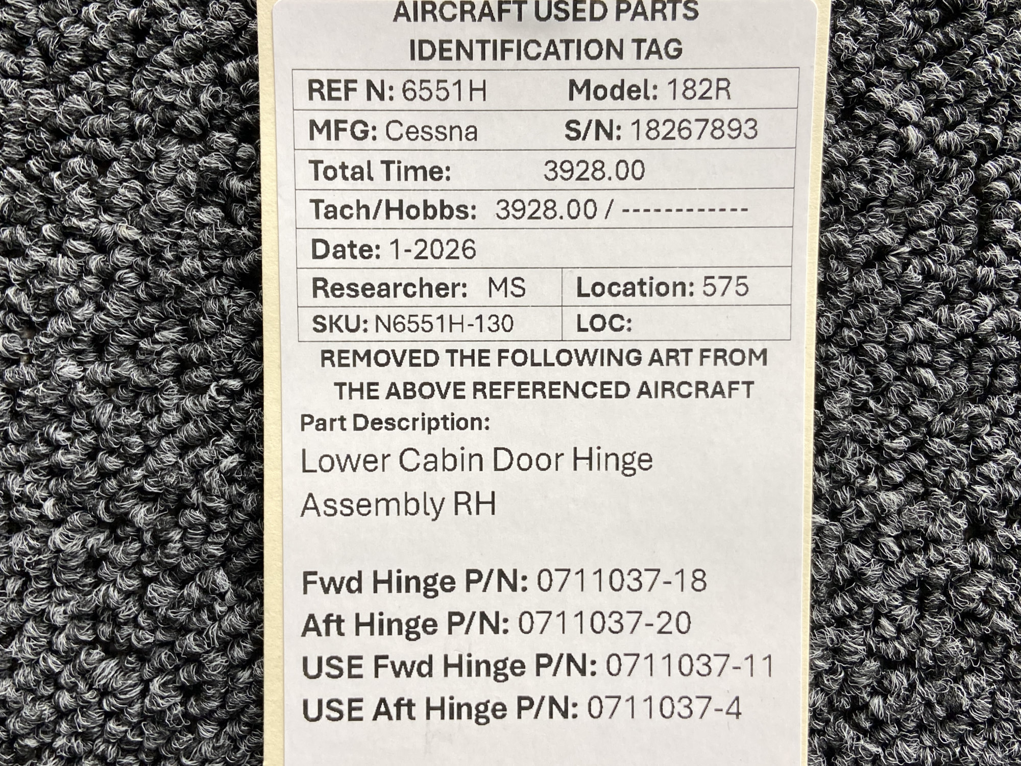 - Forward Hinge Part Number: 0711037-18