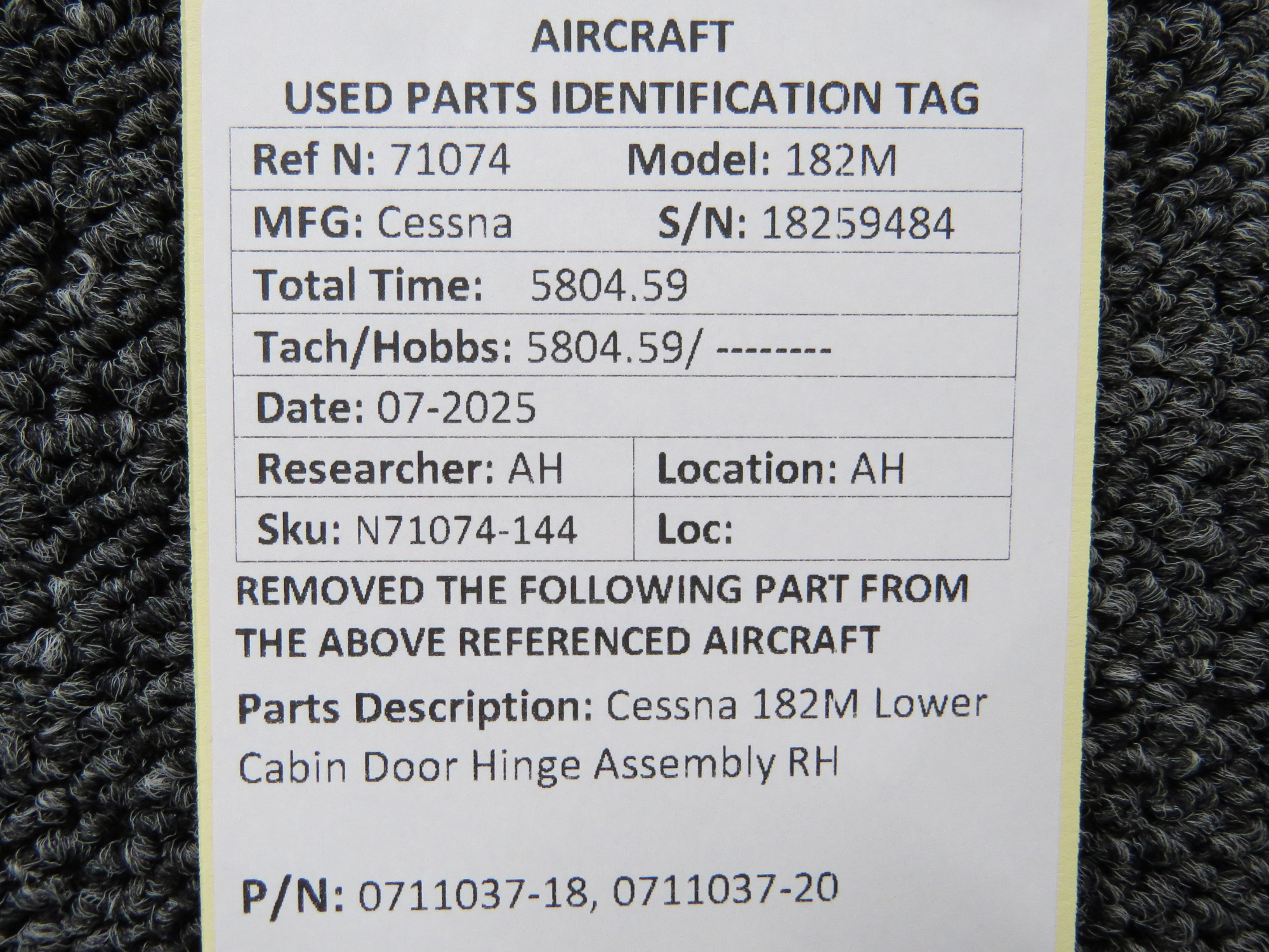 - Aft Hinge Part Number: 0711037-20