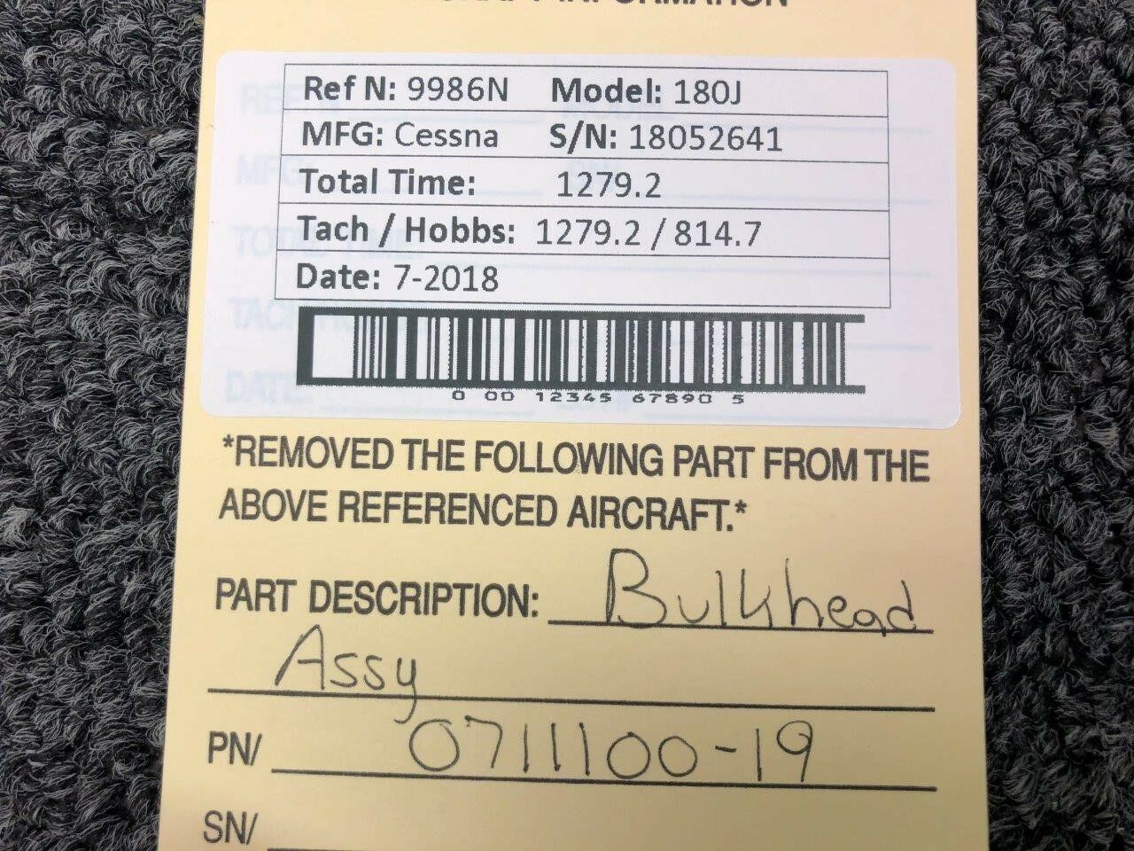 0711100-19 / 0712004-1 / 0710009-3 / 0712660-4 Cessna 180J Bulkhead Assy