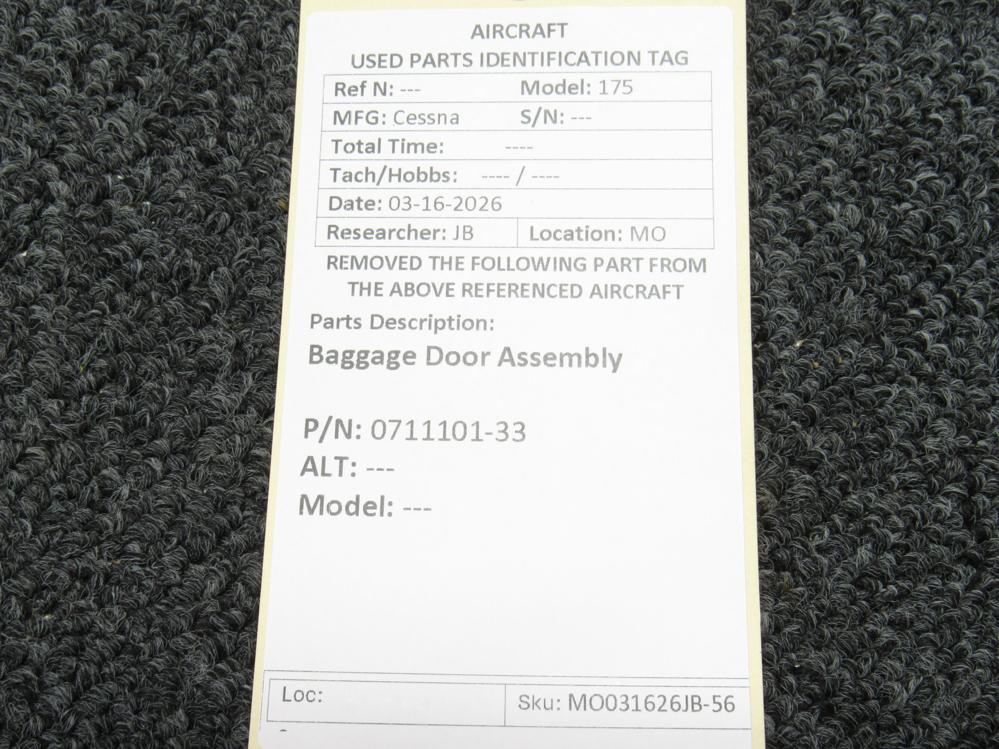 Every part is carefully inspected throughout our process and several times before it goes online. Most items are sold as-removed, just as they came off the aircraft. These parts are not functionally tested. What we do provide is clear photos, full traceability when available, pricing that reflects the as-removed condition, and a no-nonsense 90-day return window.
