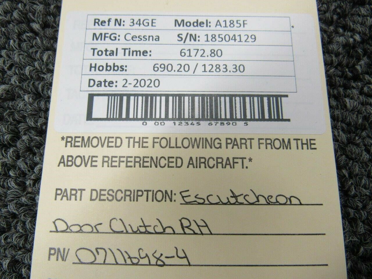 0711698-4 Cessna A185F Escutcheon Door Clutch Assy RH