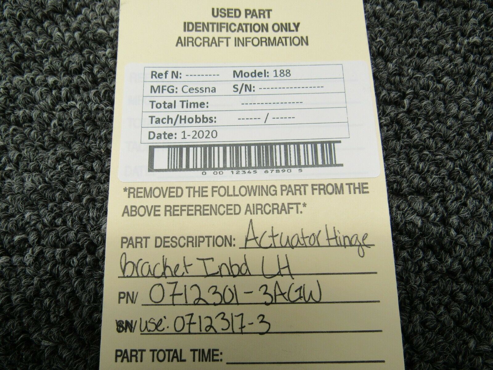 0712301-3AGW (Use: 0712317-3) Cessna 188 Actuator Bracket Hinge Inbd LH