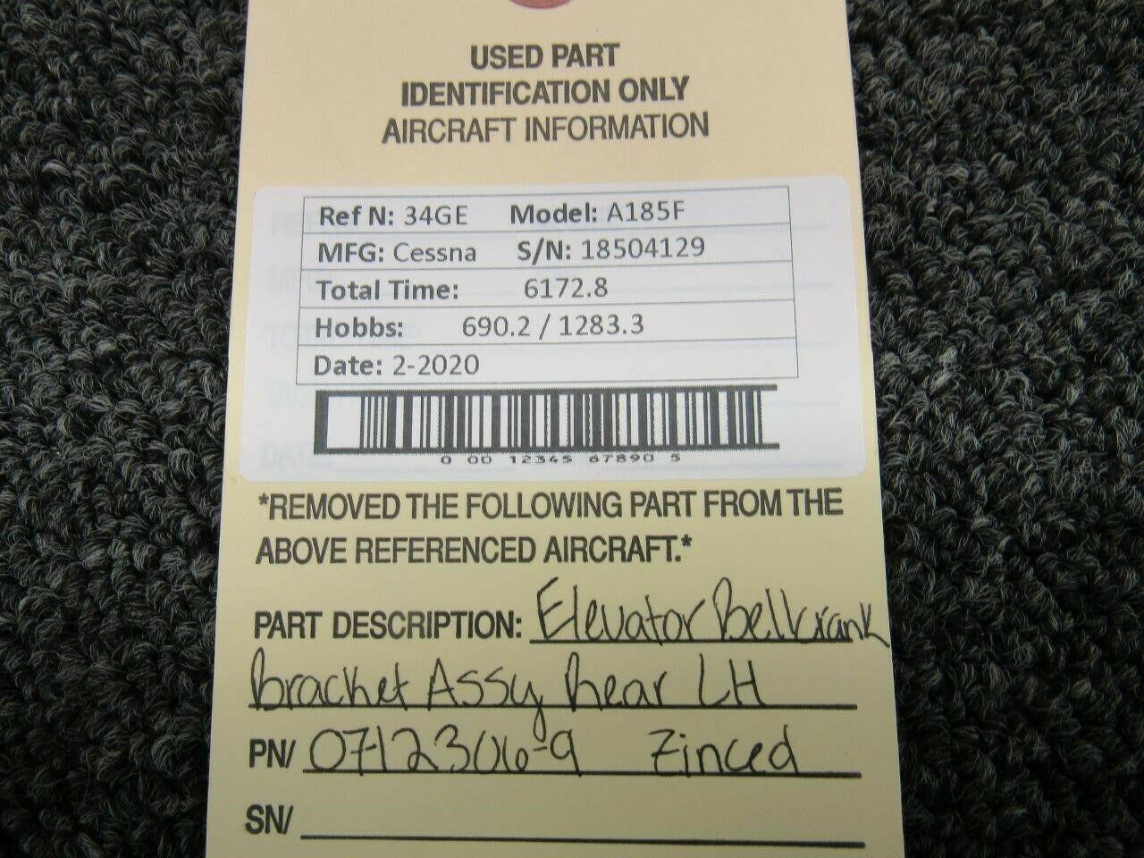 0712306-9 Cessna A185F Elevator Bellcrank Bracket Assy Rear LH (Zinc)