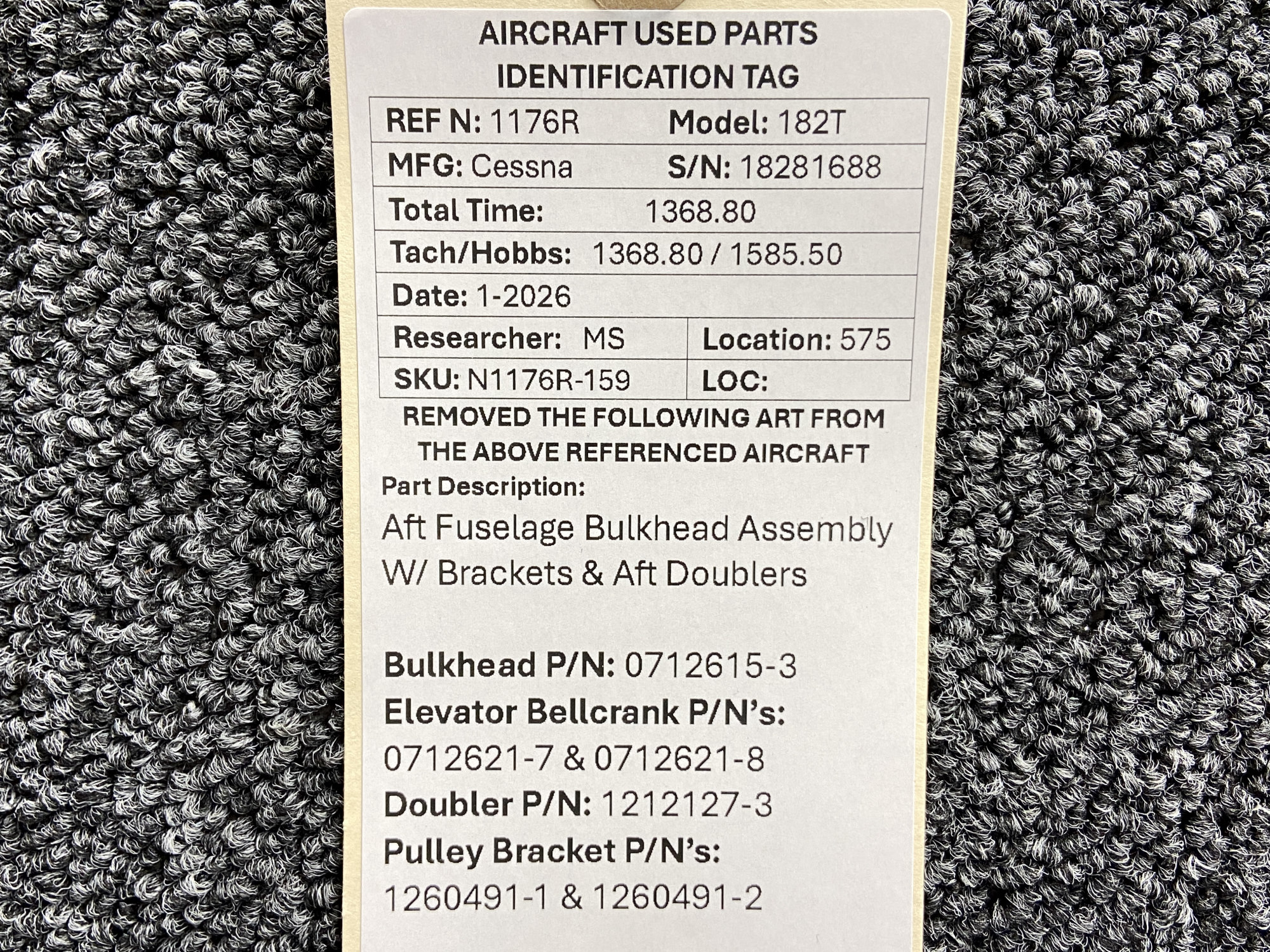 - Aft Bulkhead Part Number: 0712615-3
