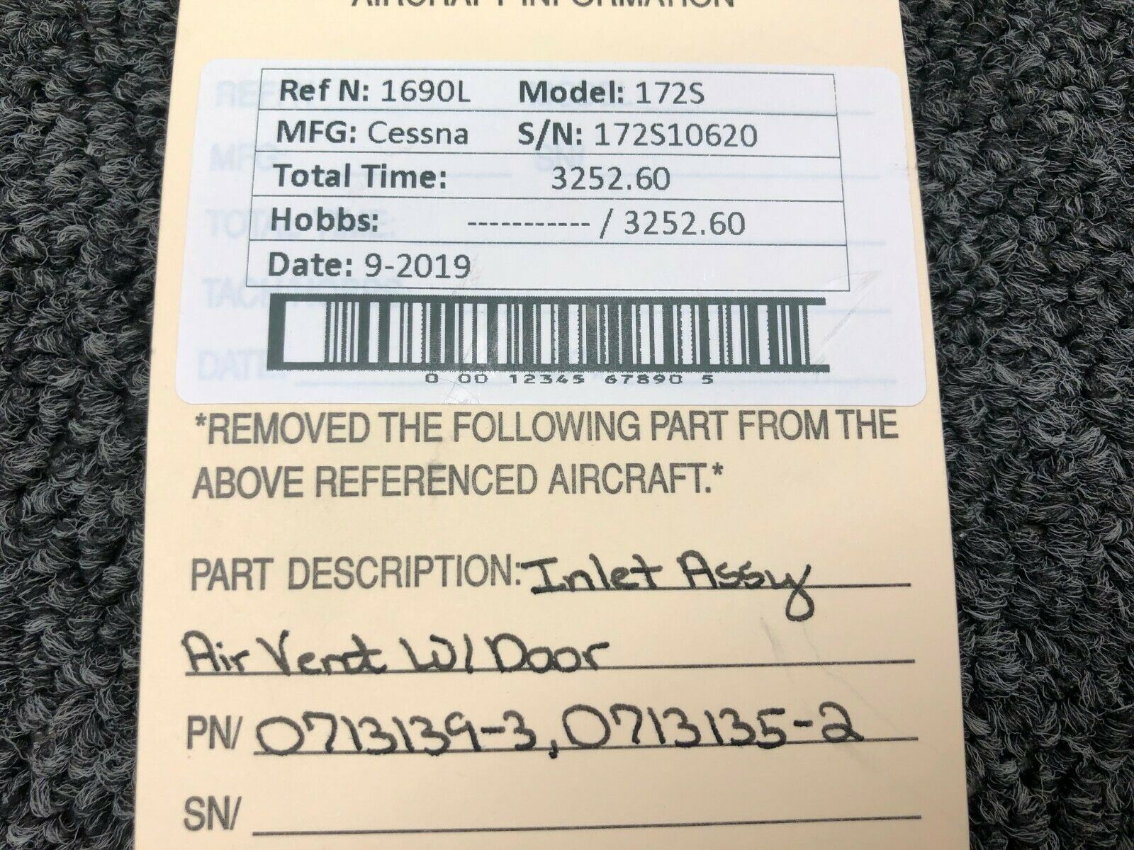 0713139-3 / 0713135-2 Cessna 172S Inlet Assembly Air Vent W/ Door