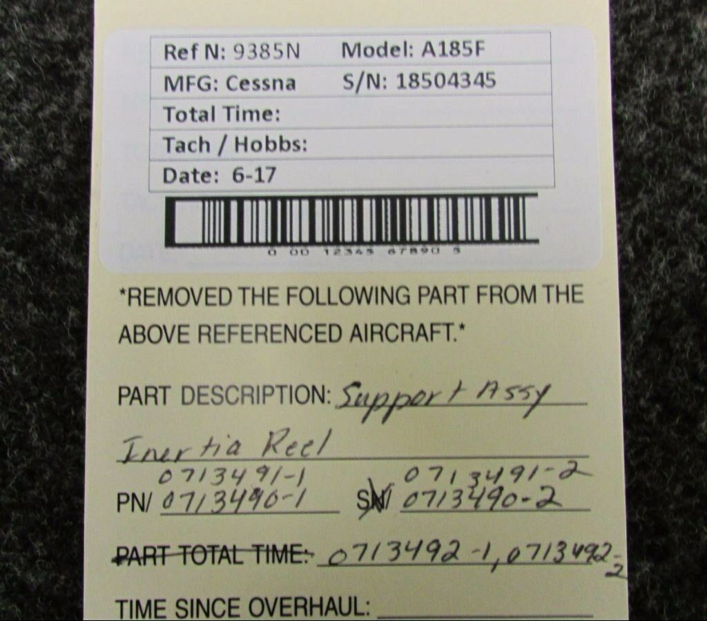 0713490-1, 0713492-1, 0713492-2 Cessna A185F Support Assy Inertia Reel