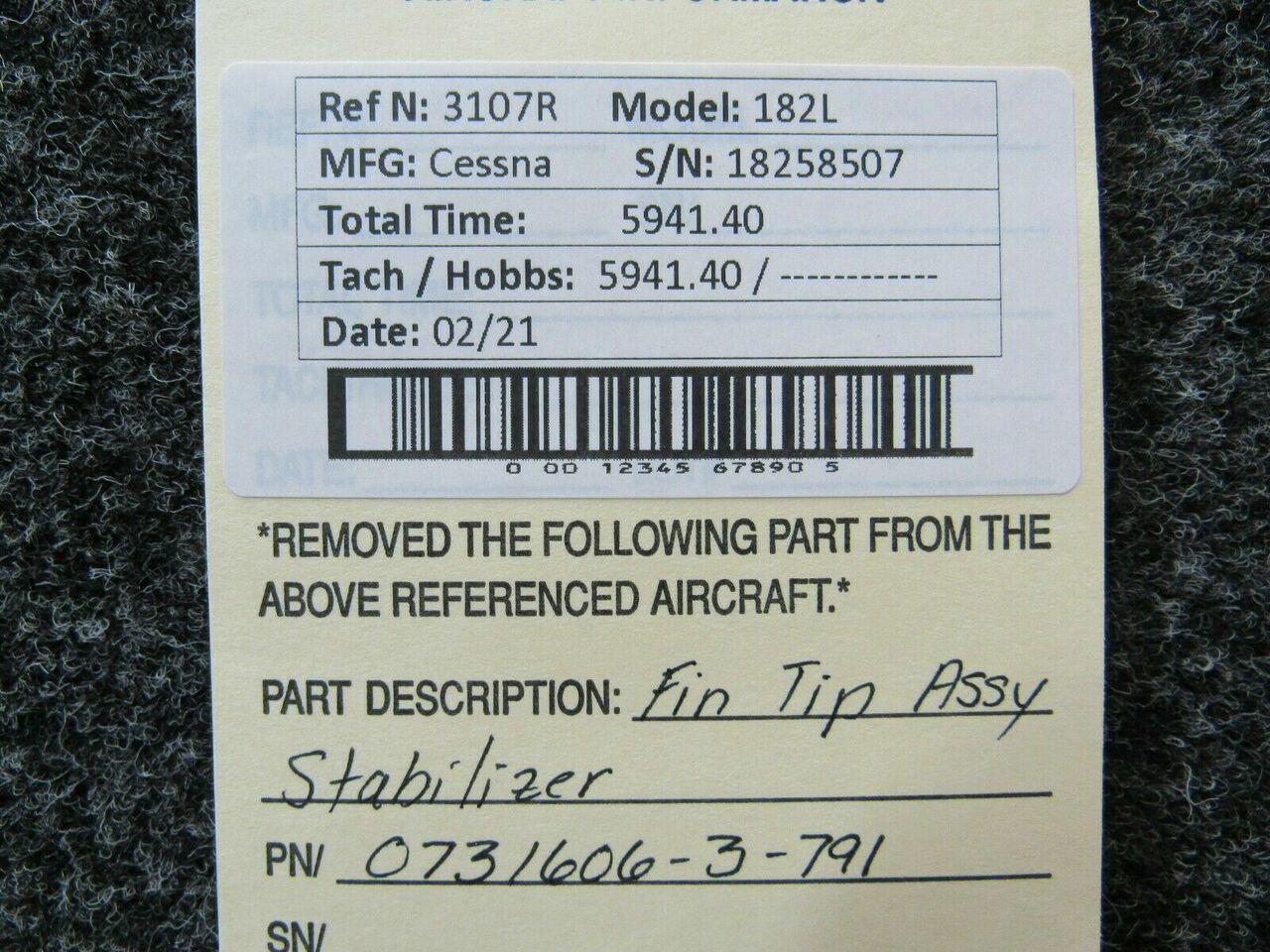 0731606-3-791 Cessna 182L Fin Tip Assembly Stabilizer