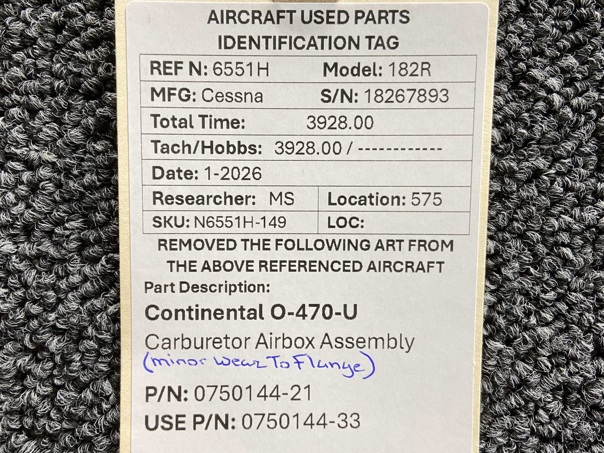 Unless specifically noted, most of our used airplane parts are sold in the condition they were removed, which means you should expect the usual signs of wear and tear.