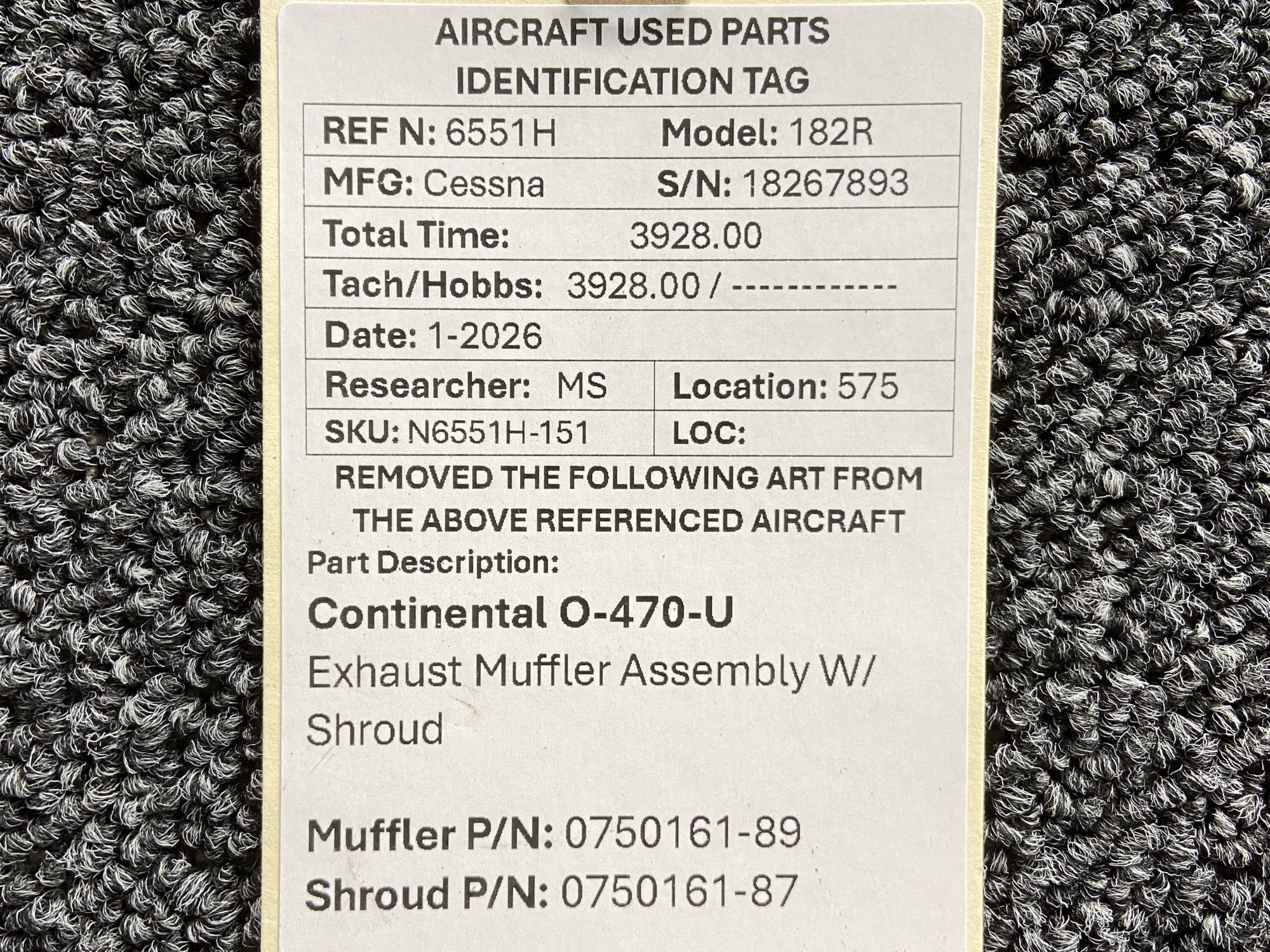 Unless specifically noted, most of our used airplane parts are sold in the condition they were removed, which means you should expect the usual signs of wear and tear.