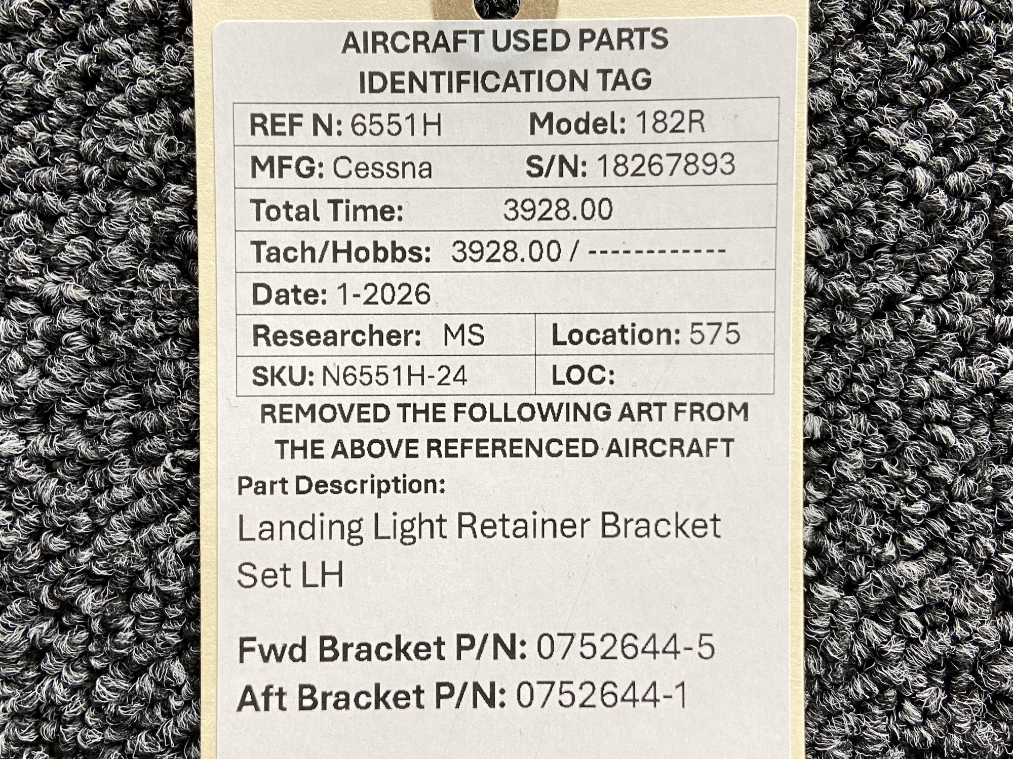 - Aft Bracket Part Number: 0752644-1