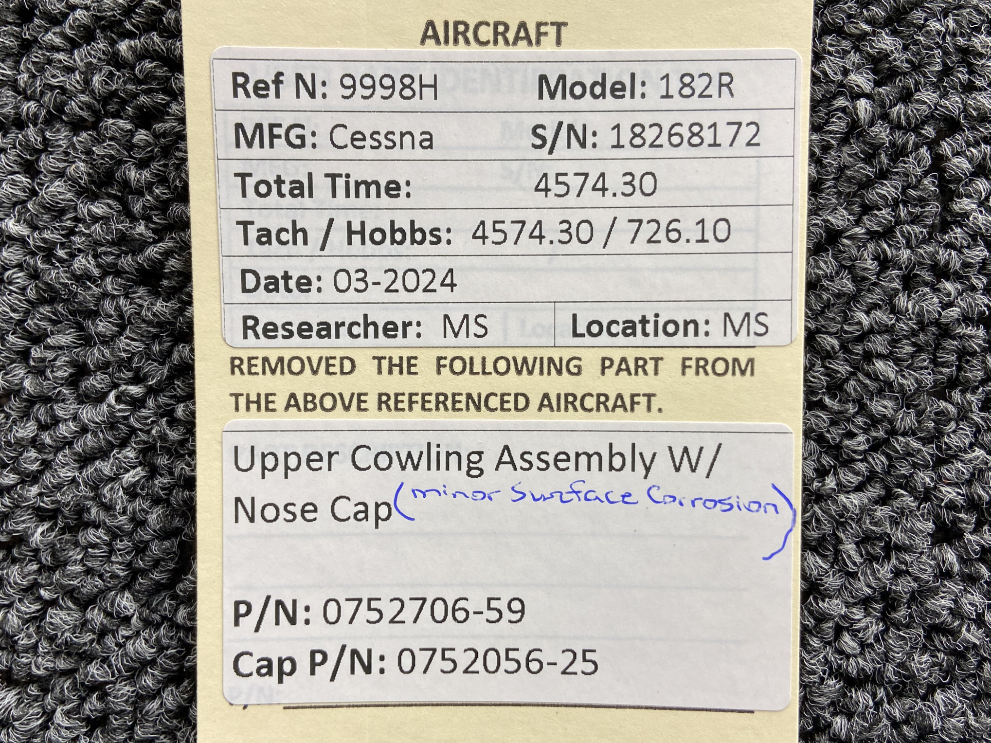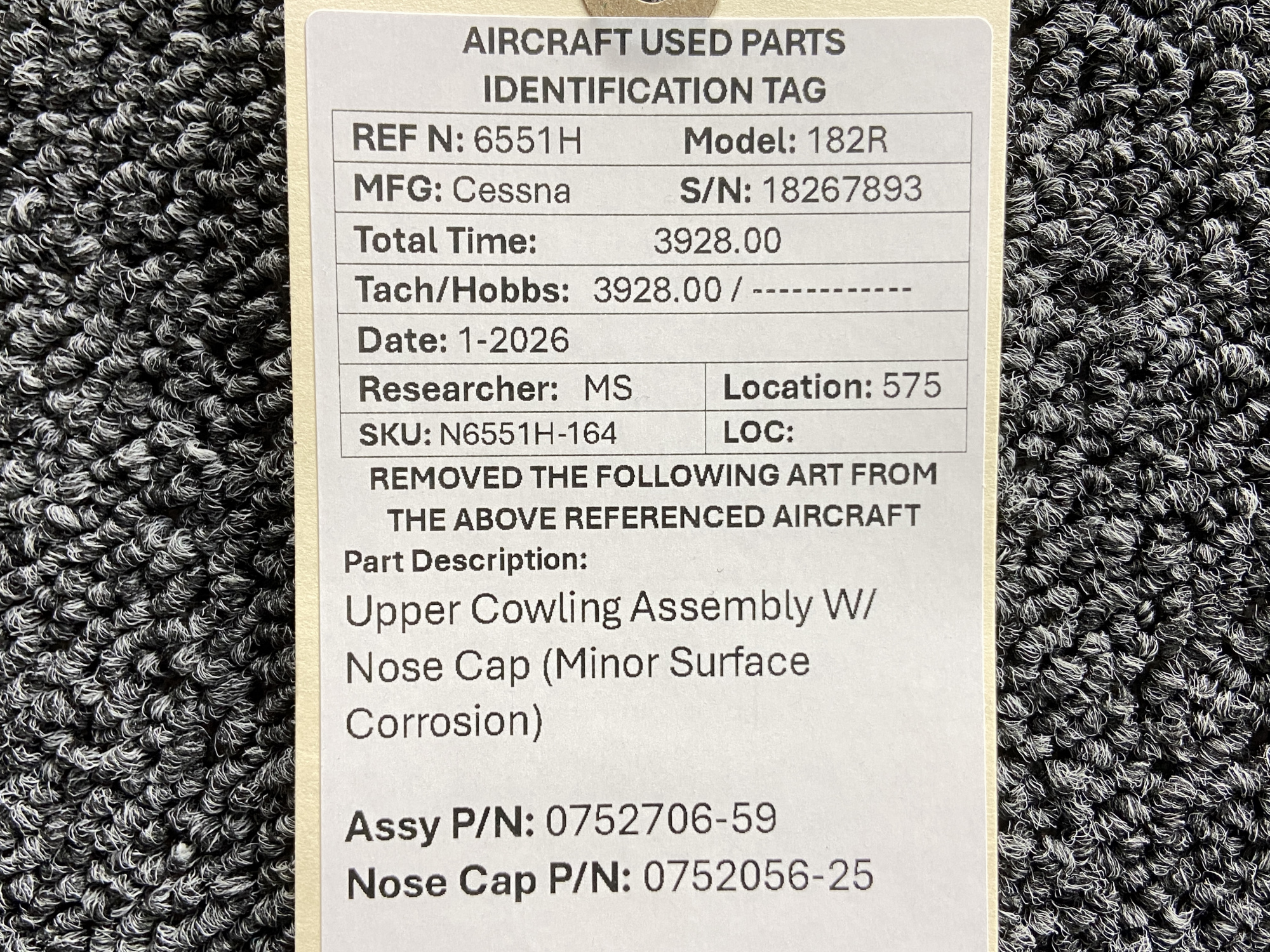 - Cowling Part Number: 0752706-59