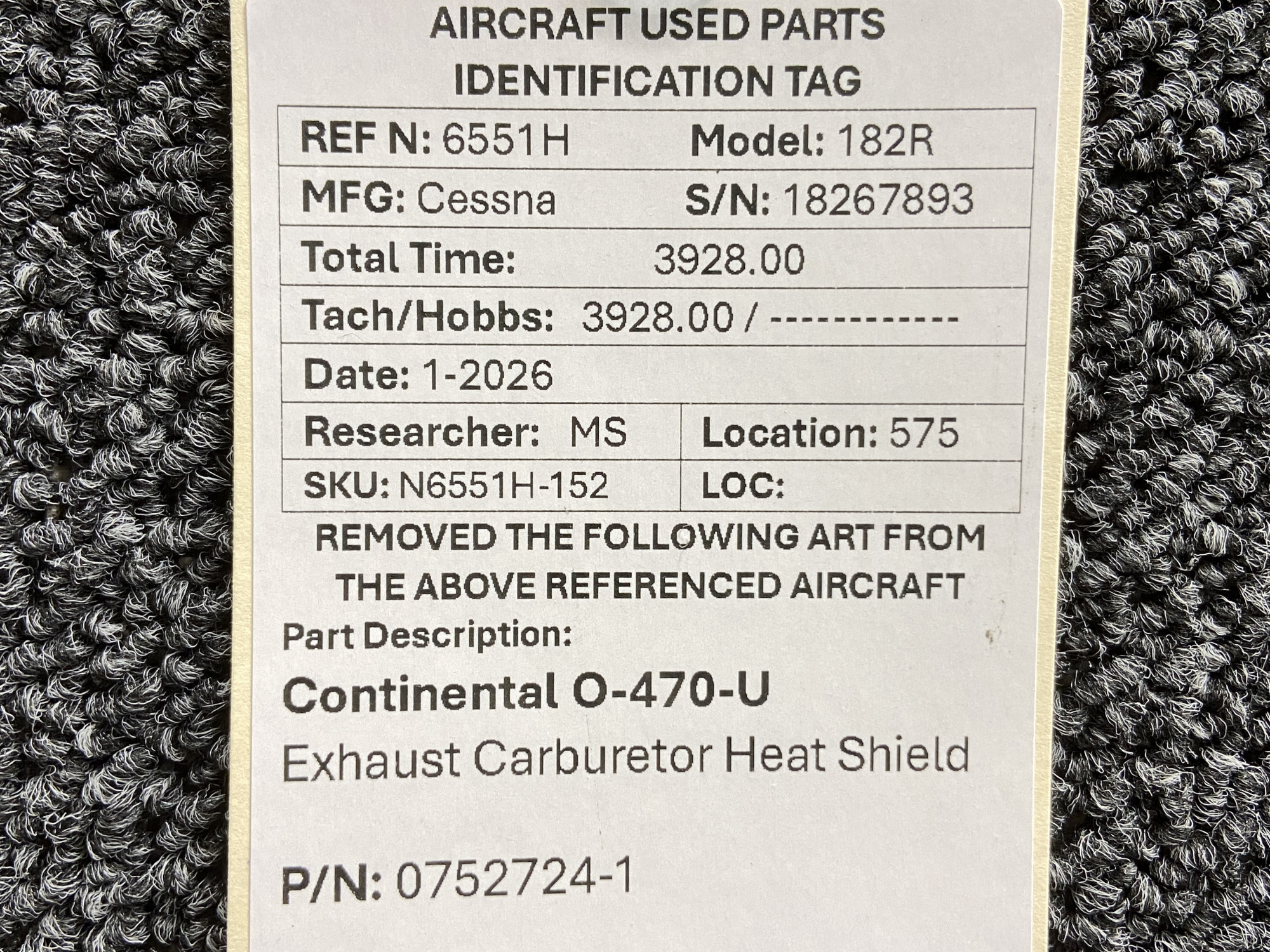 Unless specifically noted, most of our used airplane parts are sold in the condition they were removed, which means you should expect the usual signs of wear and tear.
