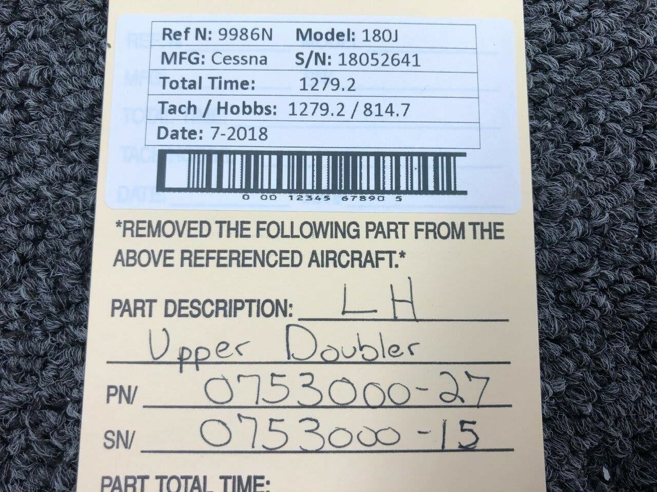 0753000-27 (Use: 0753000-15) Cessna 180J LH Upper Doubler