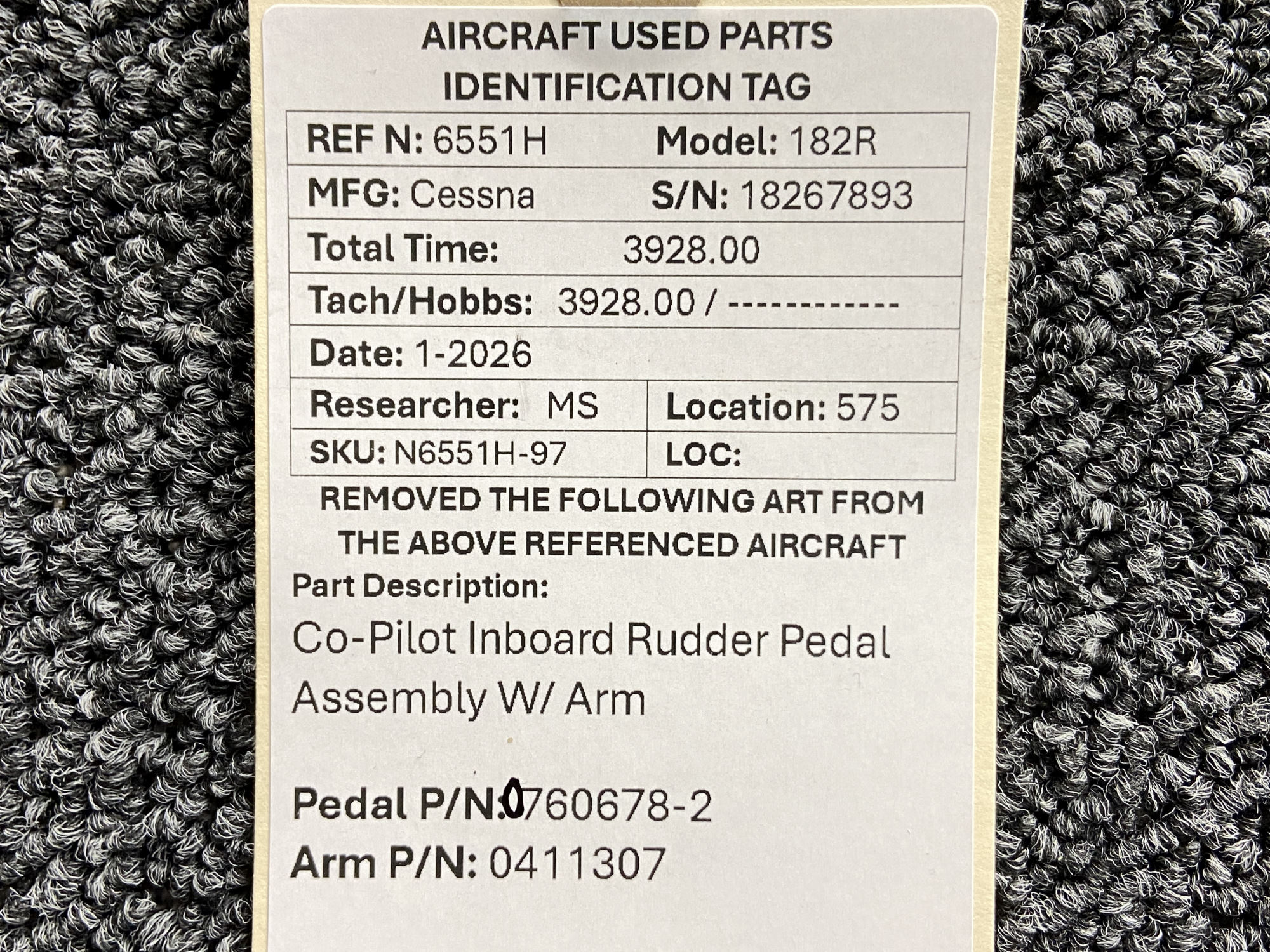 Unless specifically noted, most of our used airplane parts are sold in the condition they were removed, which means you should expect the usual signs of wear and tear.