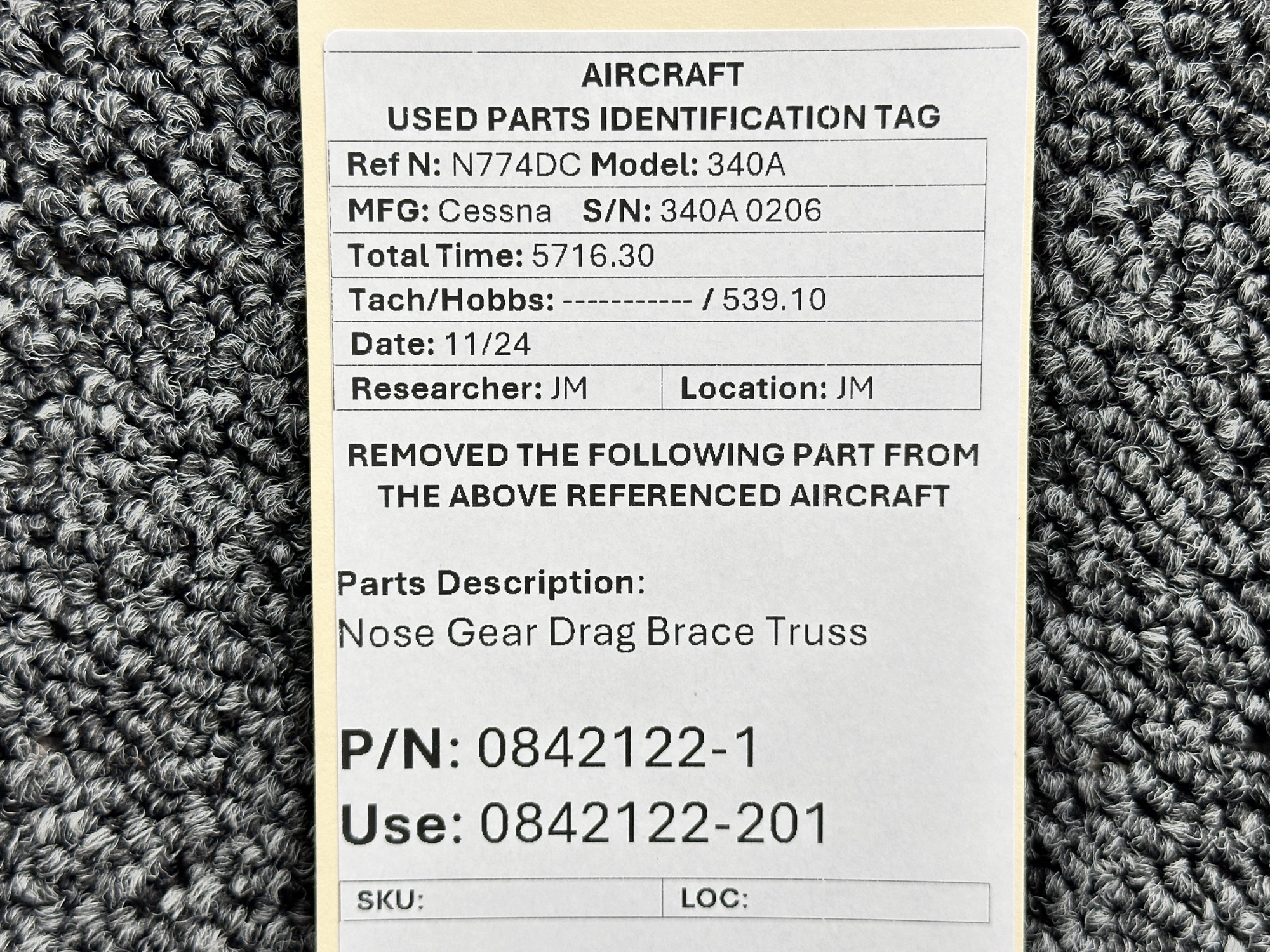 Unless specifically noted, most of our used airplane parts are sold in the condition they were removed, which means you should expect the usual signs of wear and tear.