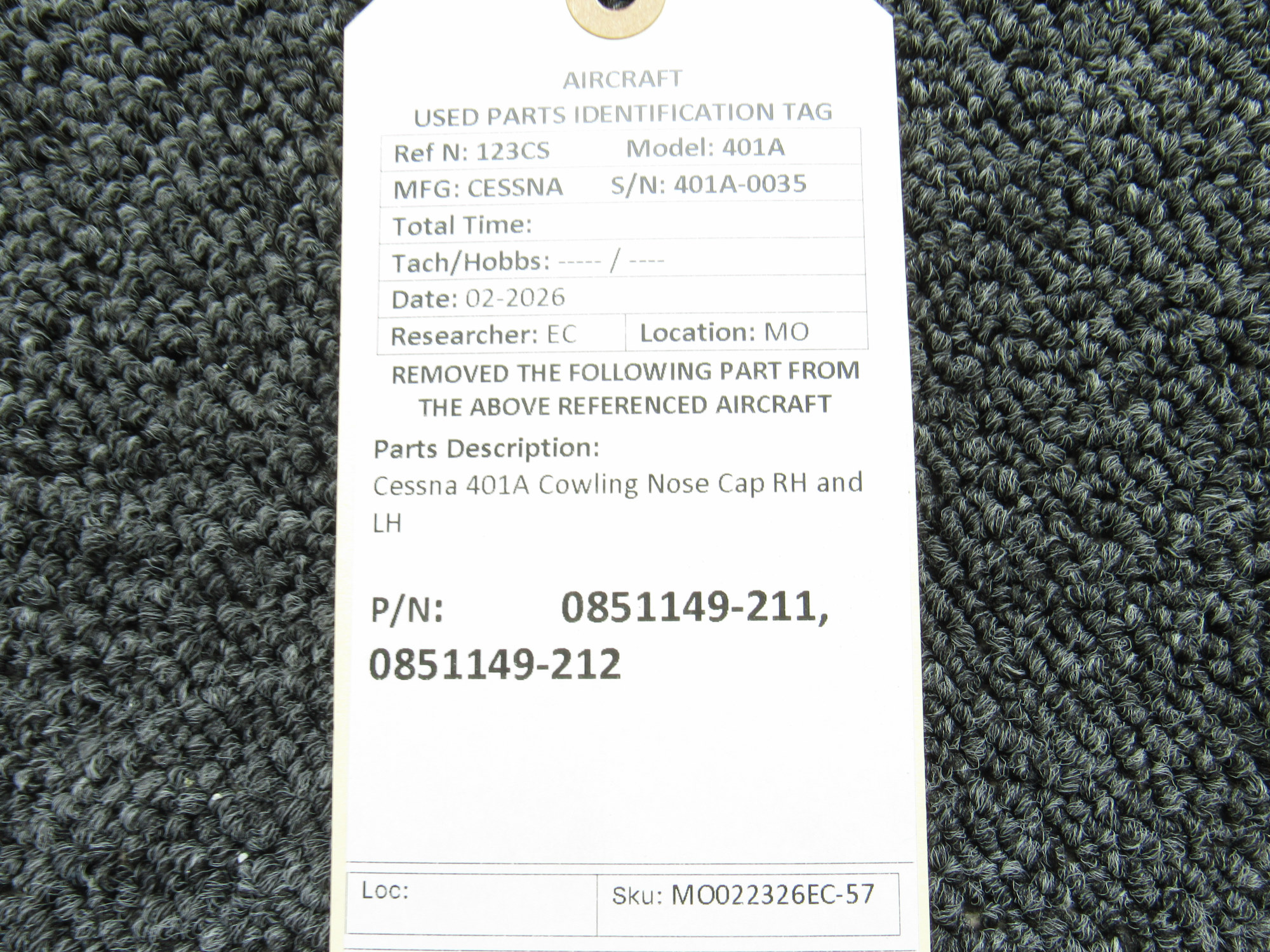 - Part Number: 0851149-212: Left Hand Nose Cowl Cap