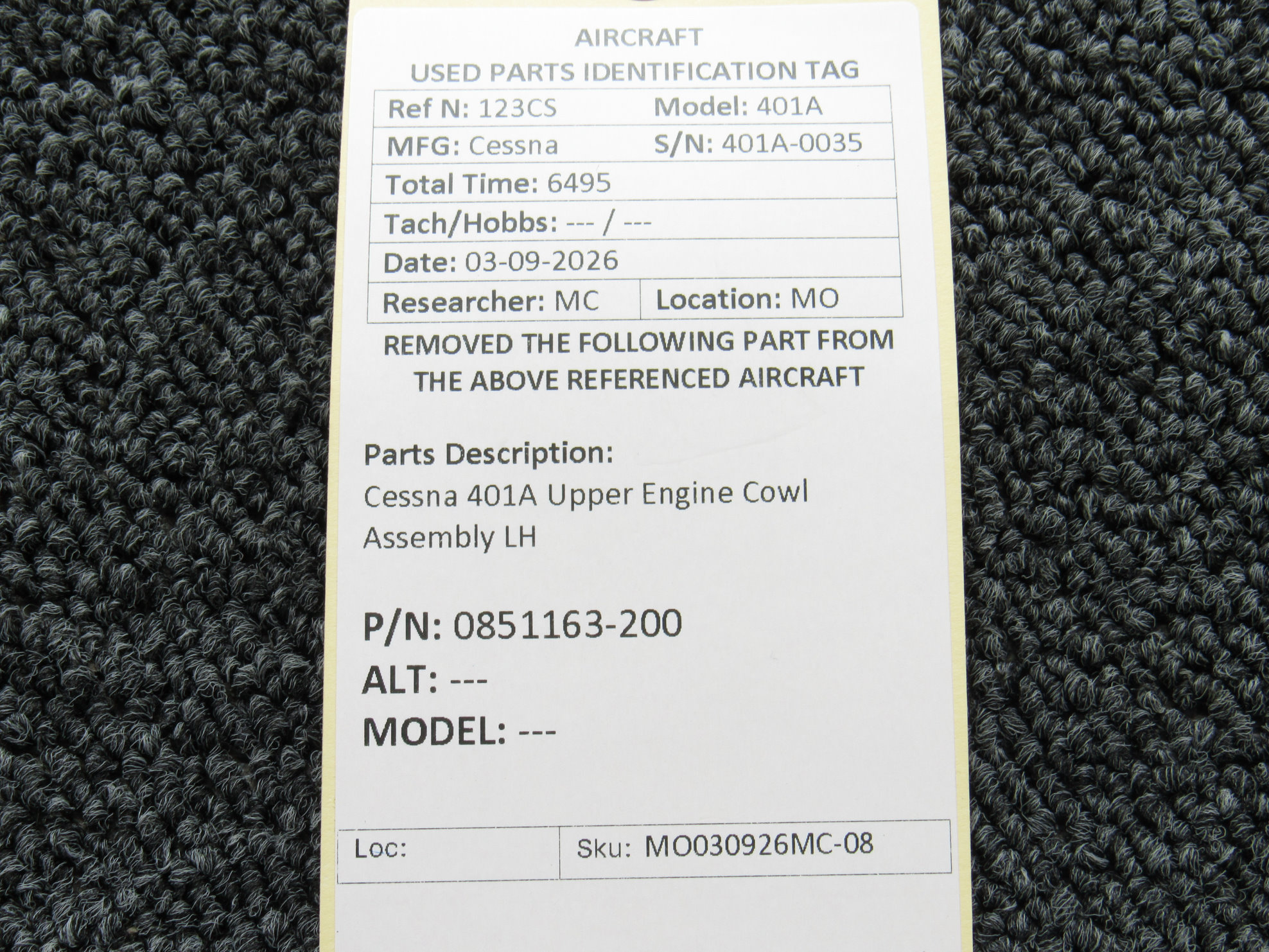 Every part is carefully inspected throughout our process and several times before it goes online. Most items are sold as-removed, just as they came off the aircraft. These parts are not functionally tested. What we do provide is clear photos, full traceability when available, pricing that reflects the as-removed condition, and a no-nonsense 90-day return window.