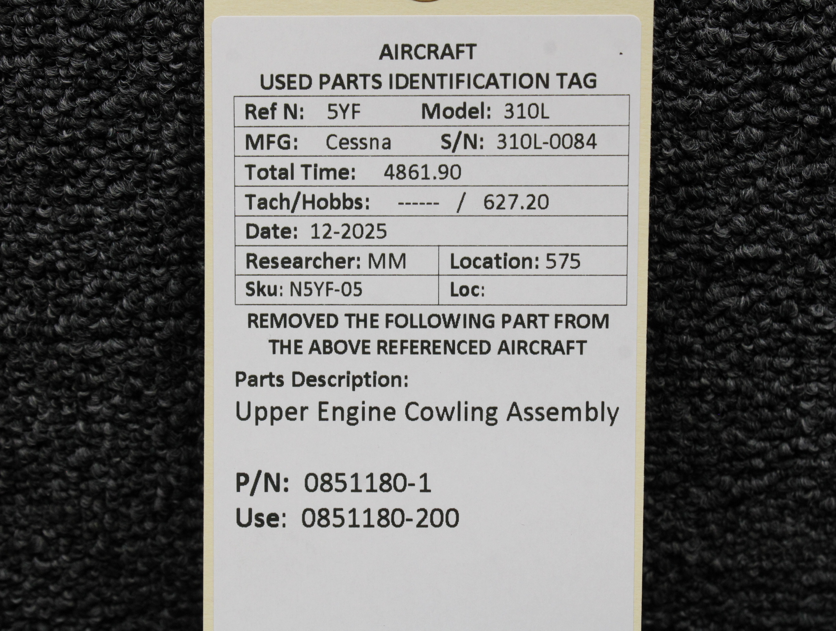 Unless specifically noted, most of our used airplane parts are sold in the condition they were removed, which means you should expect the usual signs of wear and tear.