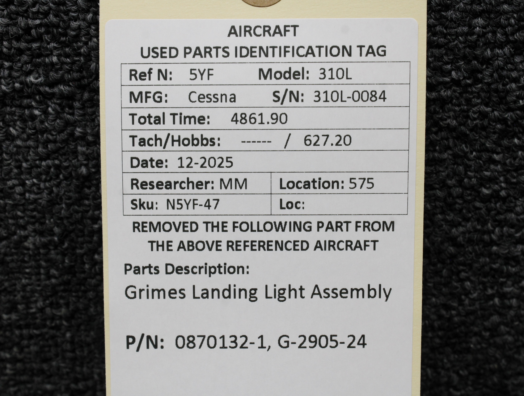 Unless specifically noted, most of our used airplane parts are sold in the condition they were removed, which means you should expect the usual signs of wear and tear.