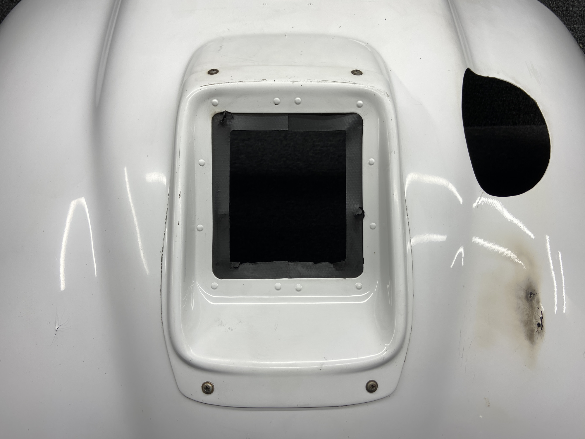 - Has minor damage to the fiberglass near the inlet (burned from heating pads)