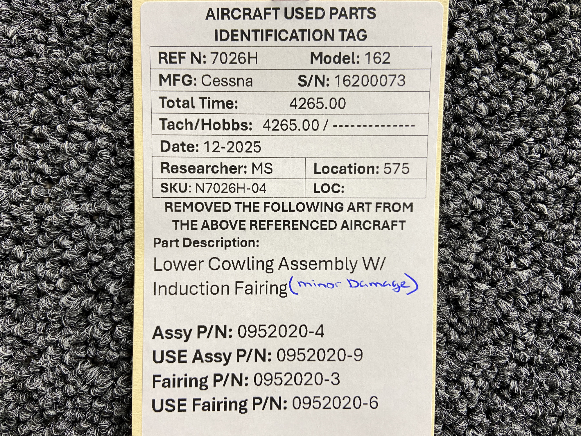 - Assembly Part Number: 0952020-4