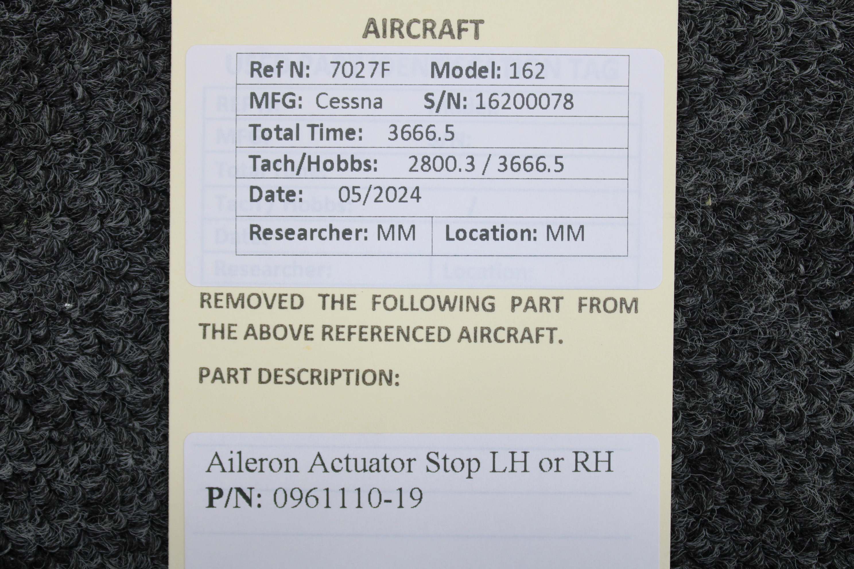 Unless specifically noted, most of our used airplane parts are sold in the condition they were removed, which means you should expect the usual signs of wear and tear.