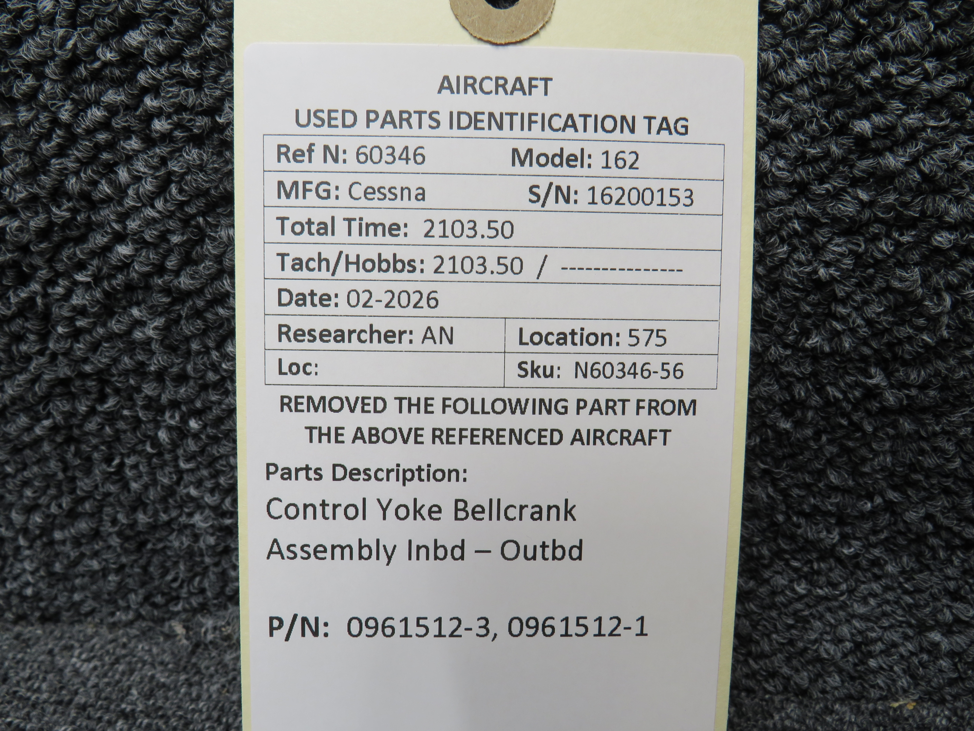 - Outboard Bellcrank Part Number: 0961512-3