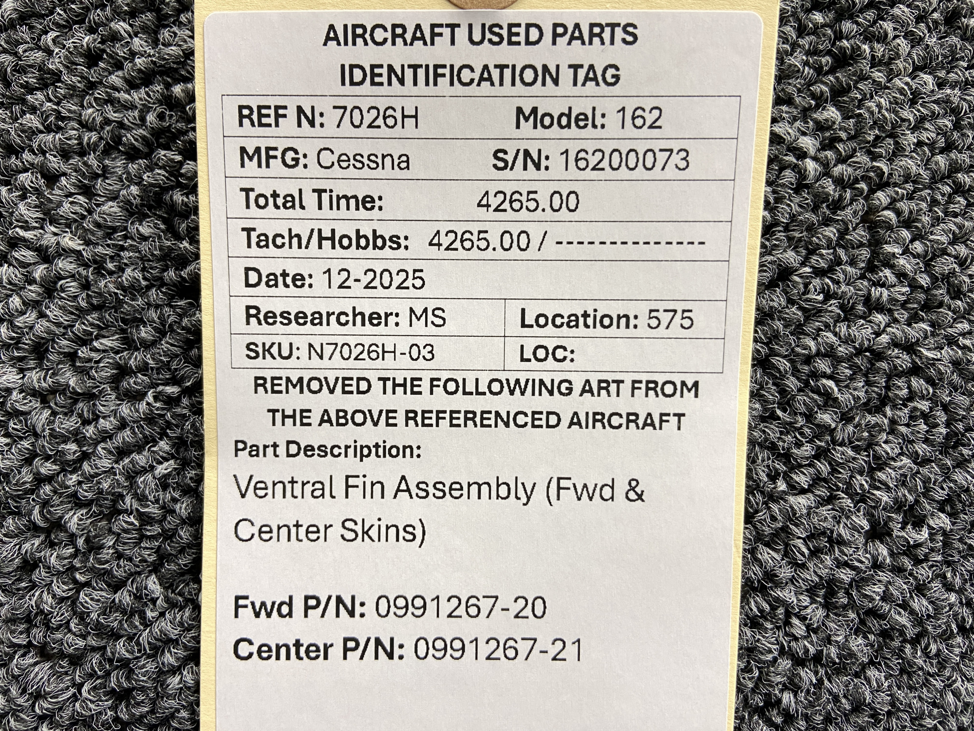 - Aft Part Number: 0991267-21