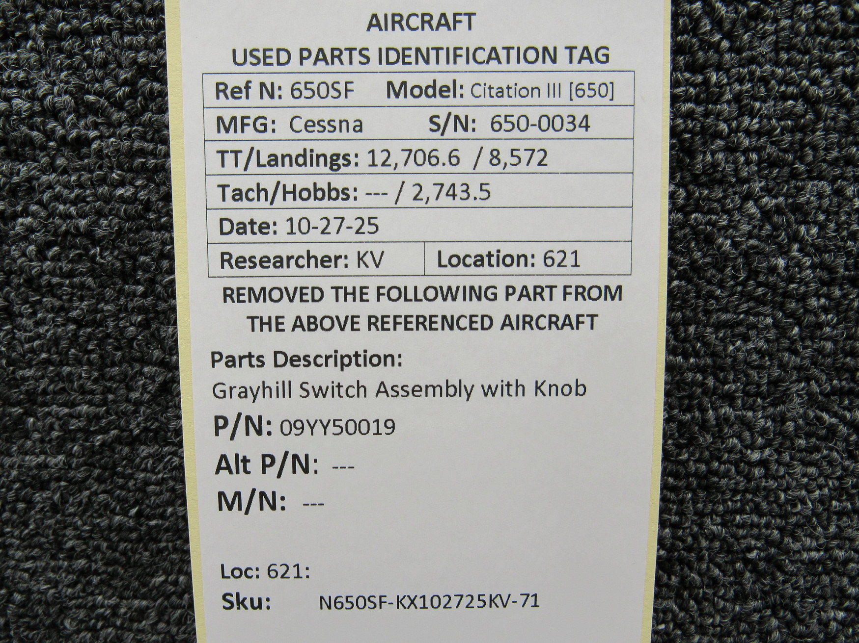 Unless specifically noted, most of our used airplane parts are sold in the condition they were removed, which means you should expect the usual signs of wear and tear.