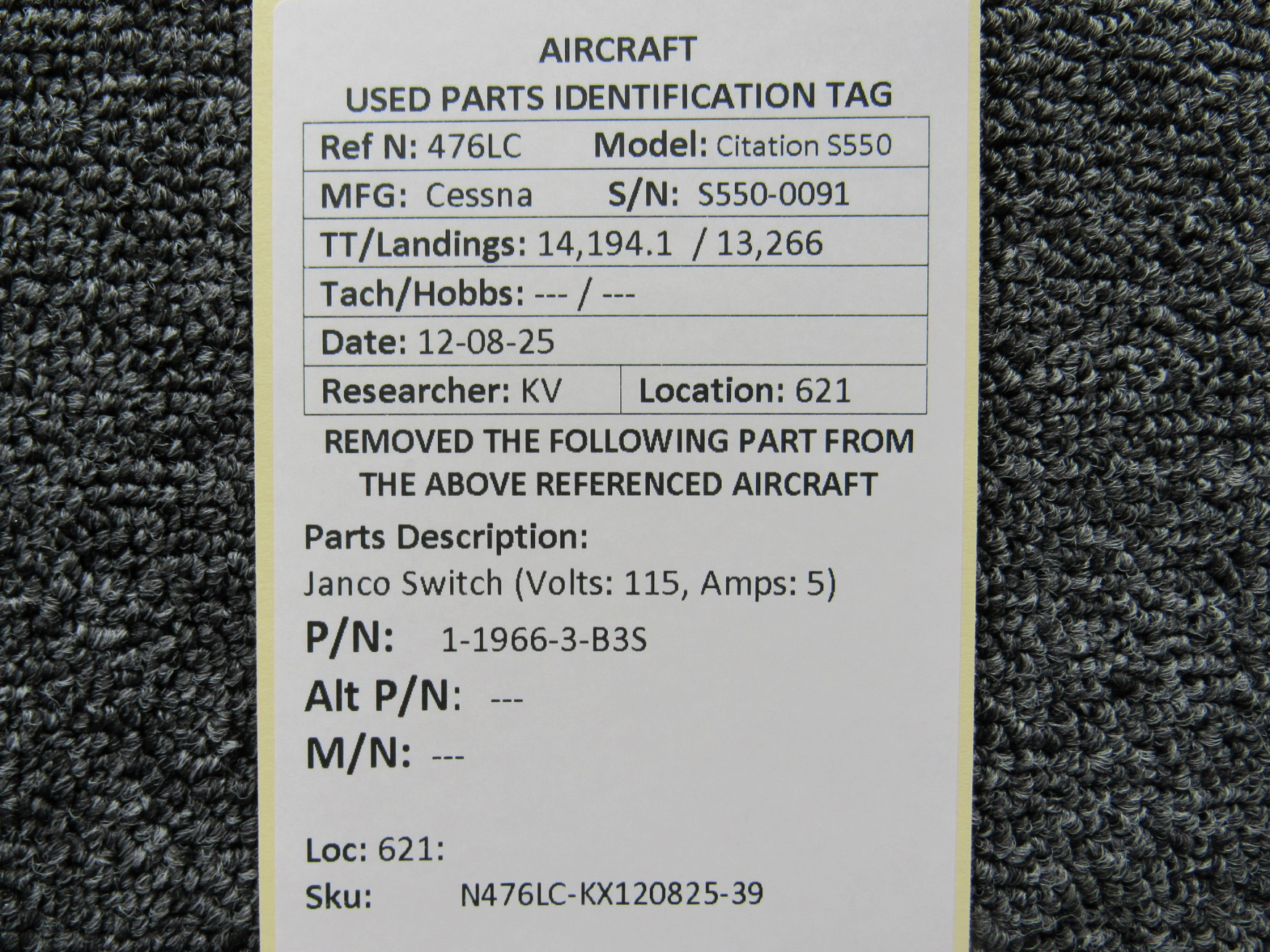 Unless specifically noted, most of our used airplane parts are sold in the condition they were removed, which means you should expect the usual signs of wear and tear.