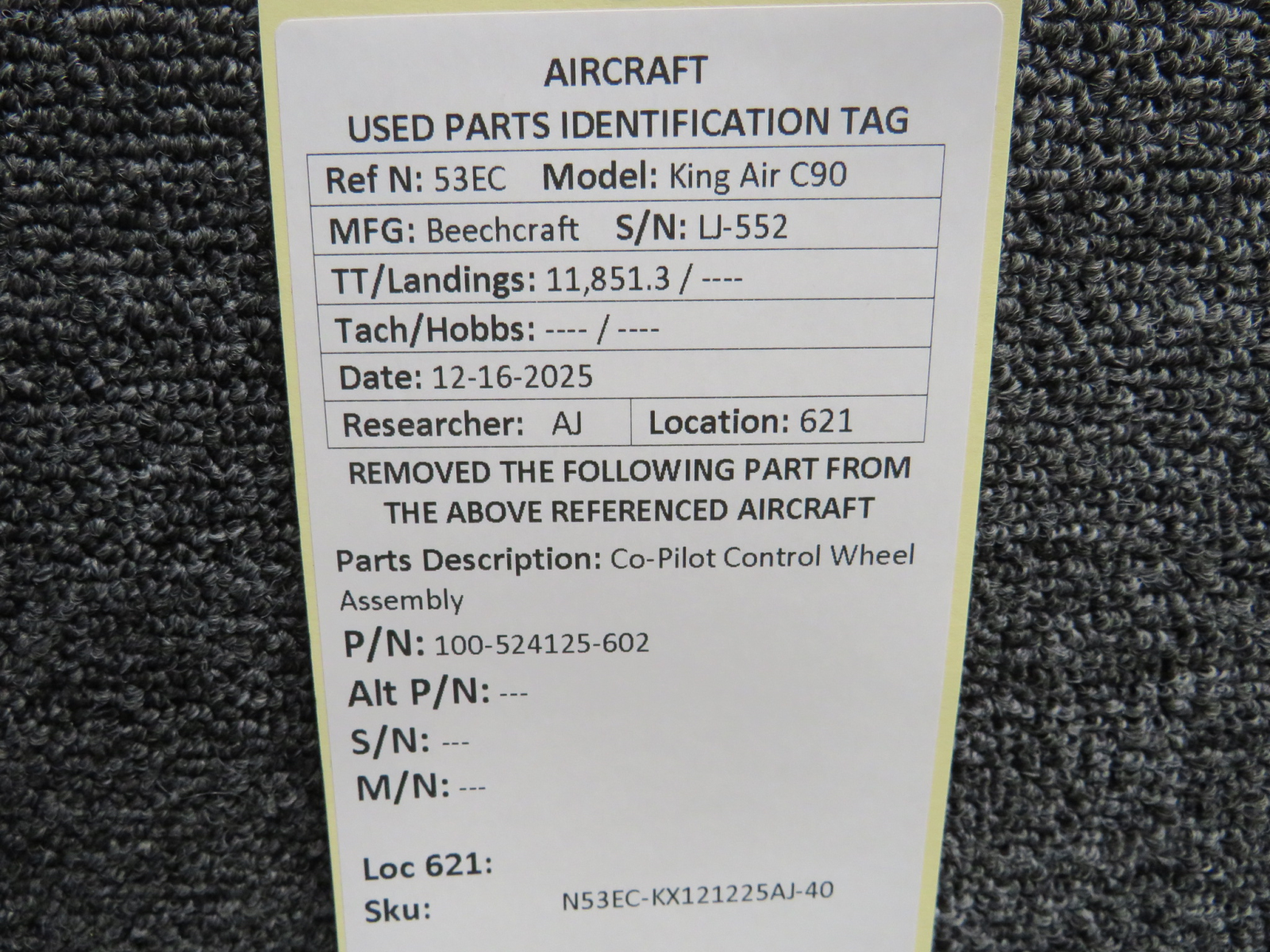 Unless specifically noted, most of our used airplane parts are sold in the condition they were removed, which means you should expect the usual signs of wear and tear.