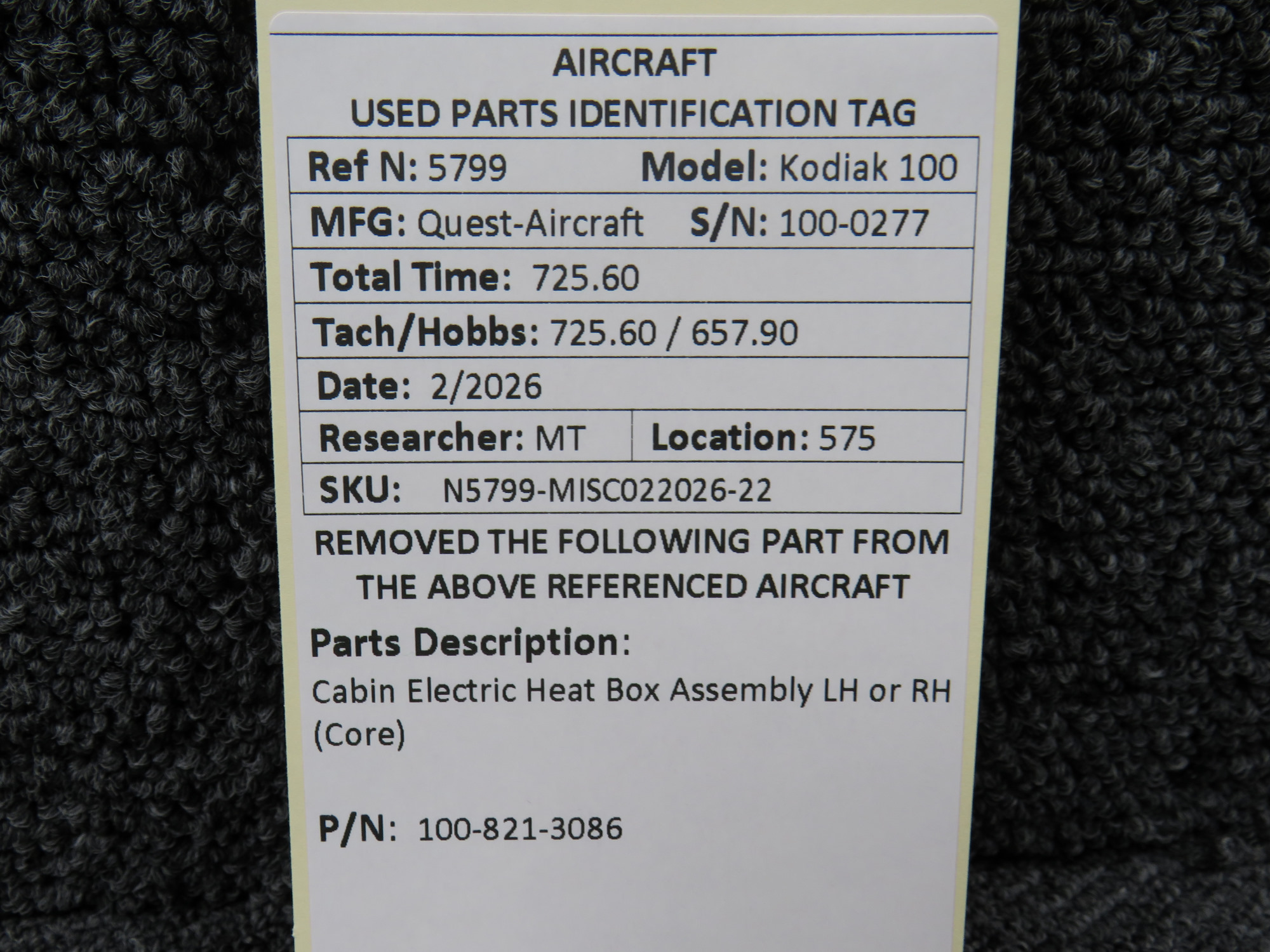 Every part is carefully inspected throughout our process and several times before it goes online. Most items are sold as-removed, just as they came off the aircraft. These parts are not functionally tested. What we do provide is clear photos, full traceability when available, pricing that reflects the as-removed condition, and a no-nonsense 90-day return window.