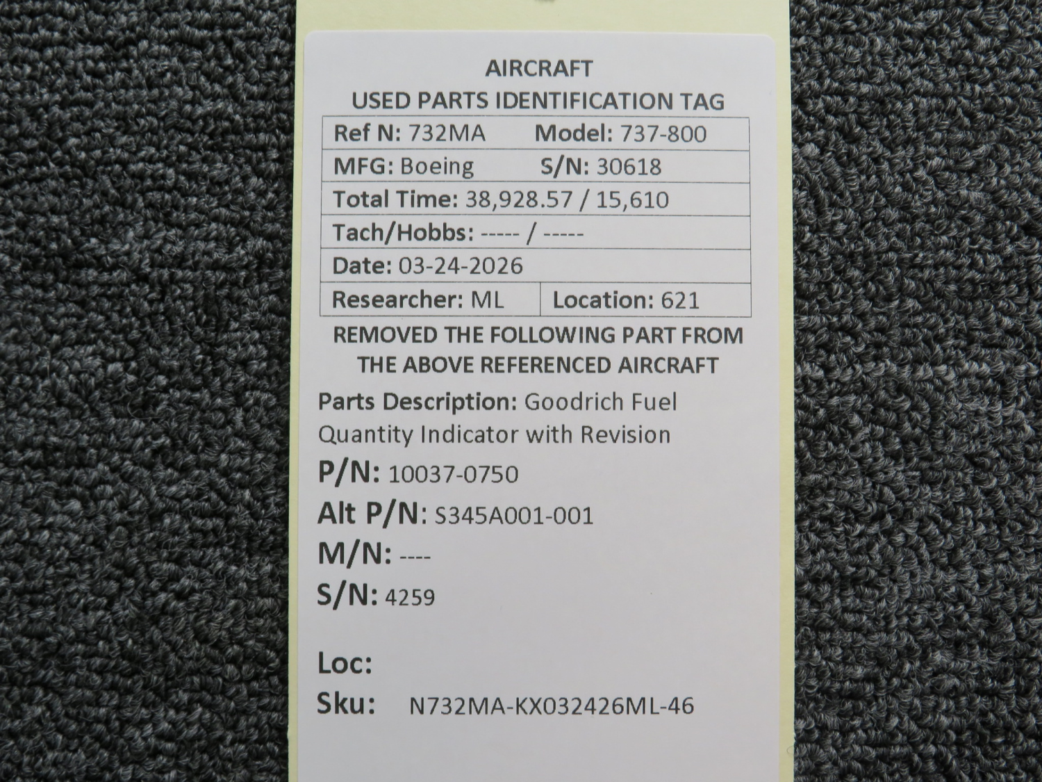 Every part is carefully inspected throughout our process and several times before it goes online. Most items are sold as-removed, just as they came off the aircraft. These parts are not functionally tested. What we do provide is clear photos, full traceability when available, pricing that reflects the as-removed condition, and a no-nonsense 90-day return window.