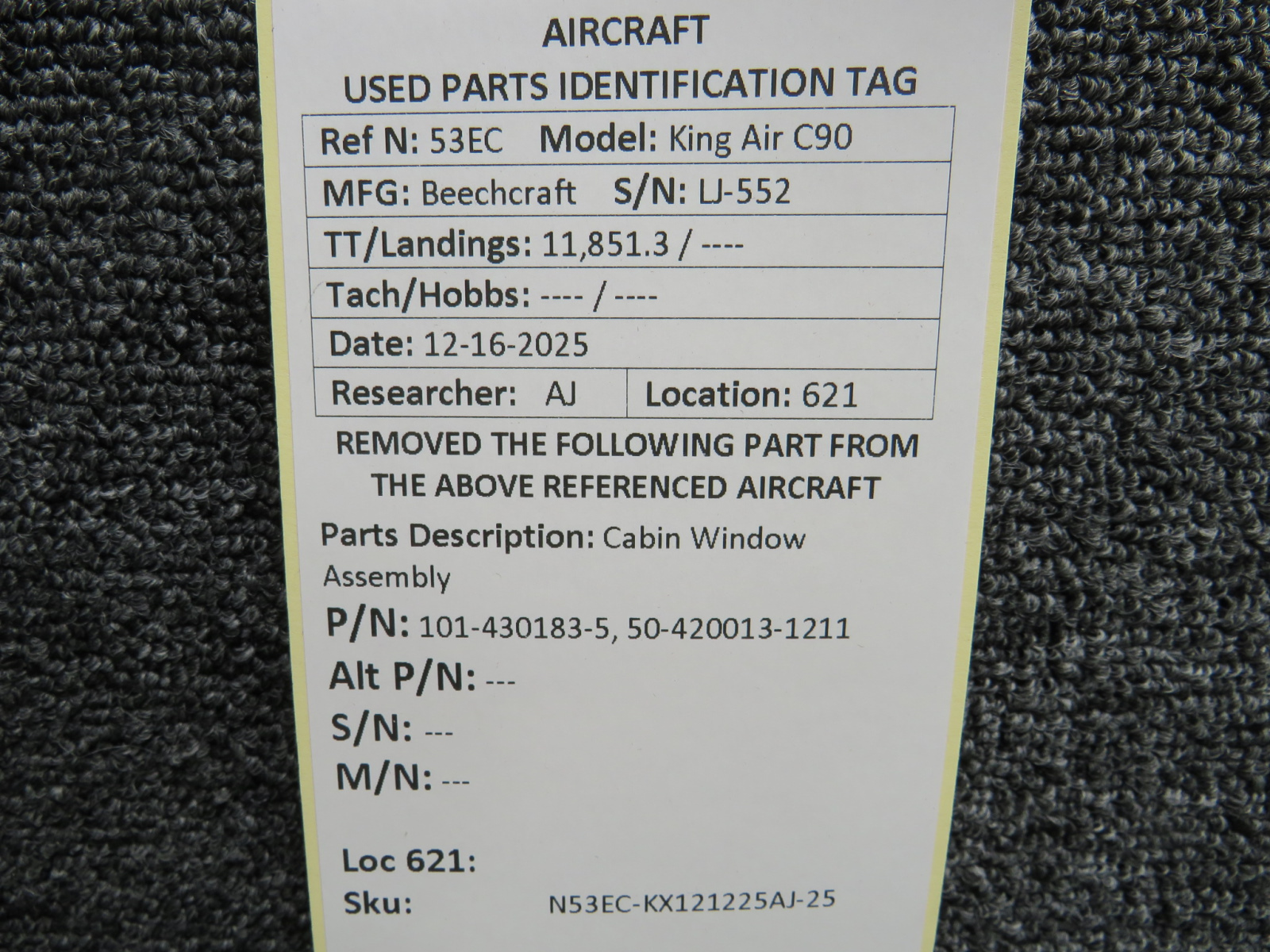 Unless specifically noted, most of our used airplane parts are sold in the condition they were removed, which means you should expect the usual signs of wear and tear.