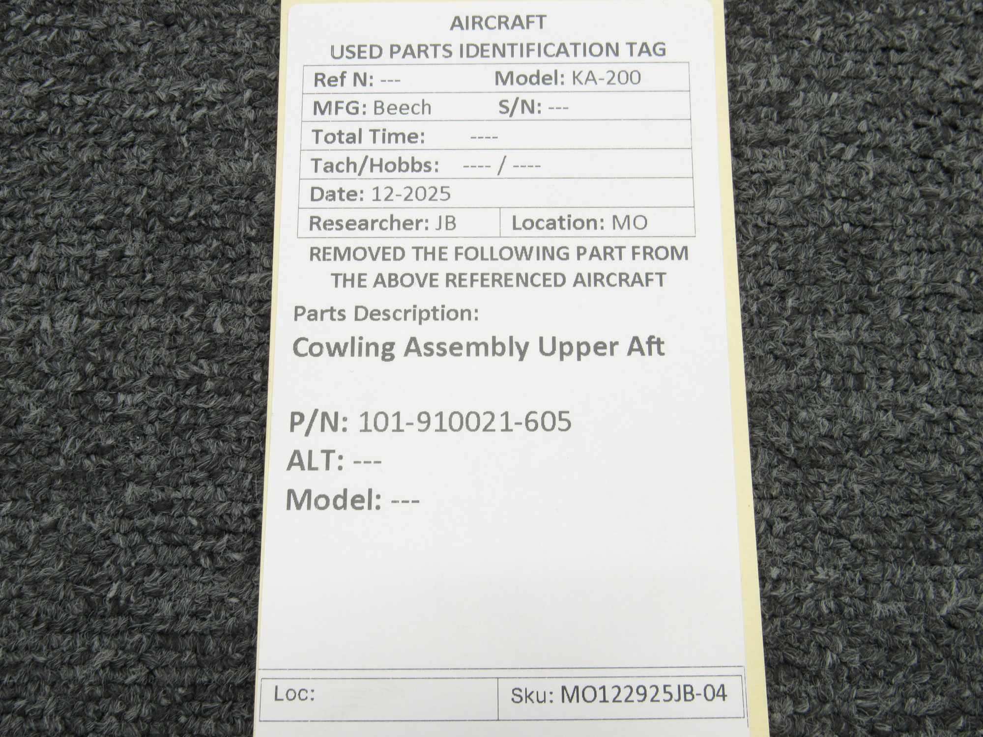 Unless specifically noted, most of our used airplane parts are sold in the condition they were removed, which means you should expect the usual signs of wear and tear.