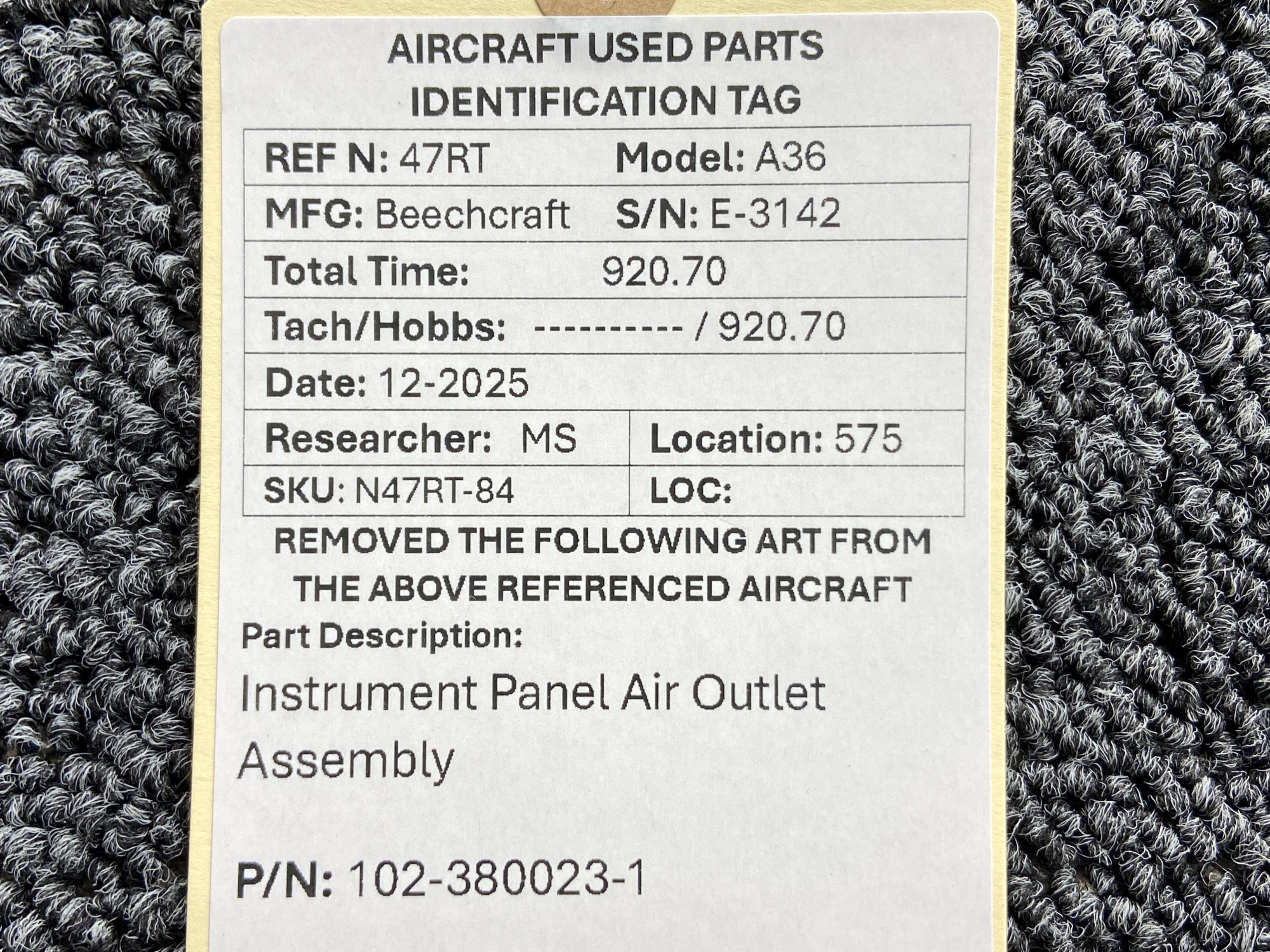 Unless specifically noted, most of our used airplane parts are sold in the condition they were removed, which means you should expect the usual signs of wear and tear.