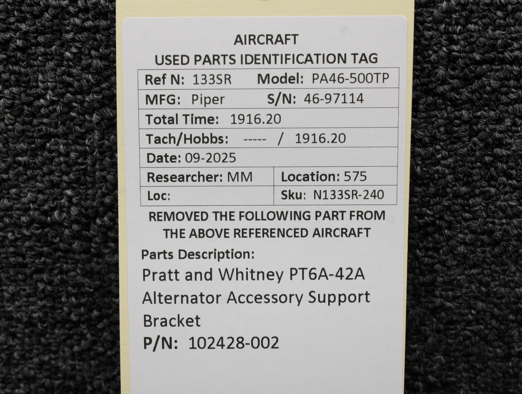 - Removed From: Pratt & Whitney PT6A-42A